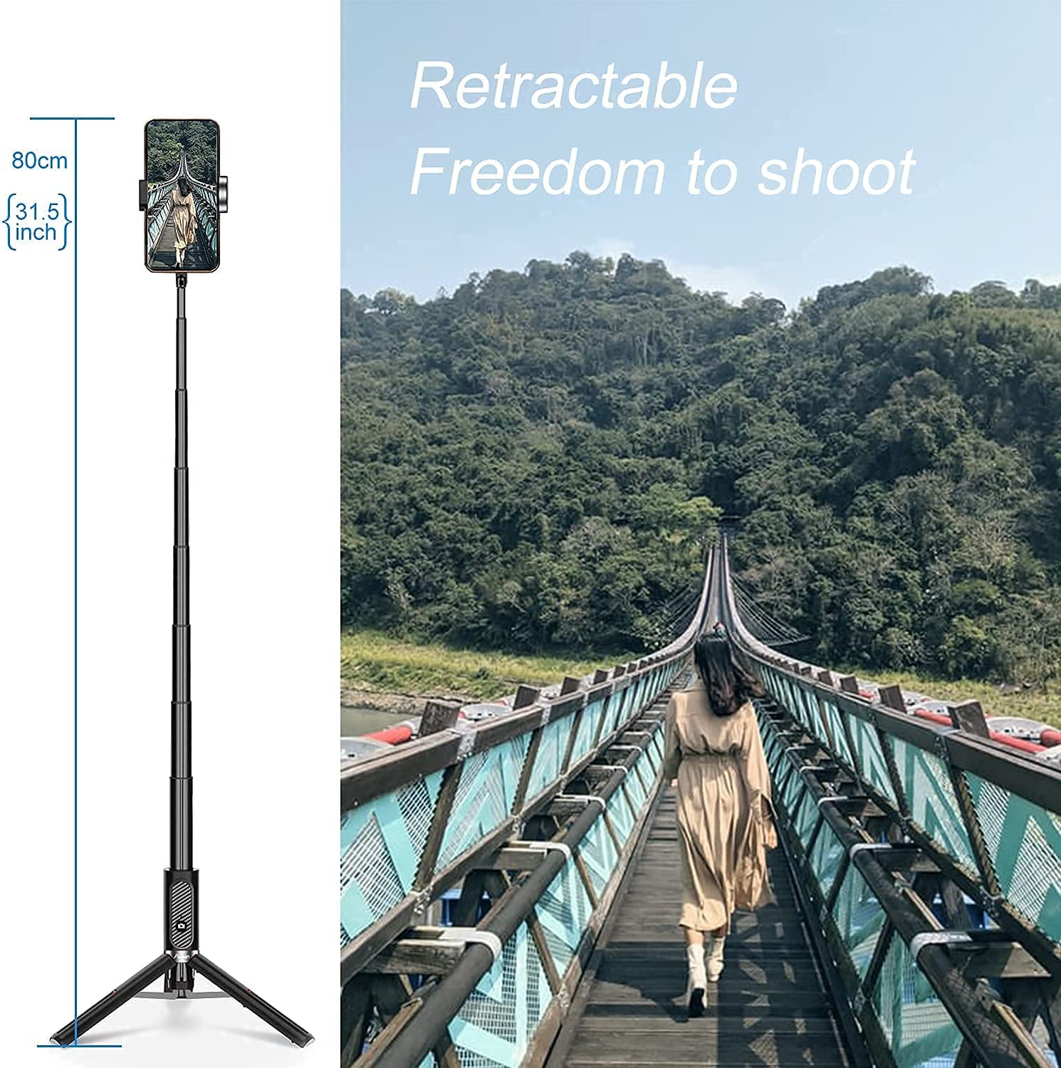 • Selfie Stick Tripod & Phone Tripod Stand: Switch freely between selfie stick mode and tripod stand mode. The tripod is applicable to any situation such as video shooting, group photos, vlogging, adventuring, and taking selfies. Plus, it works in landscape or portrait mode.
