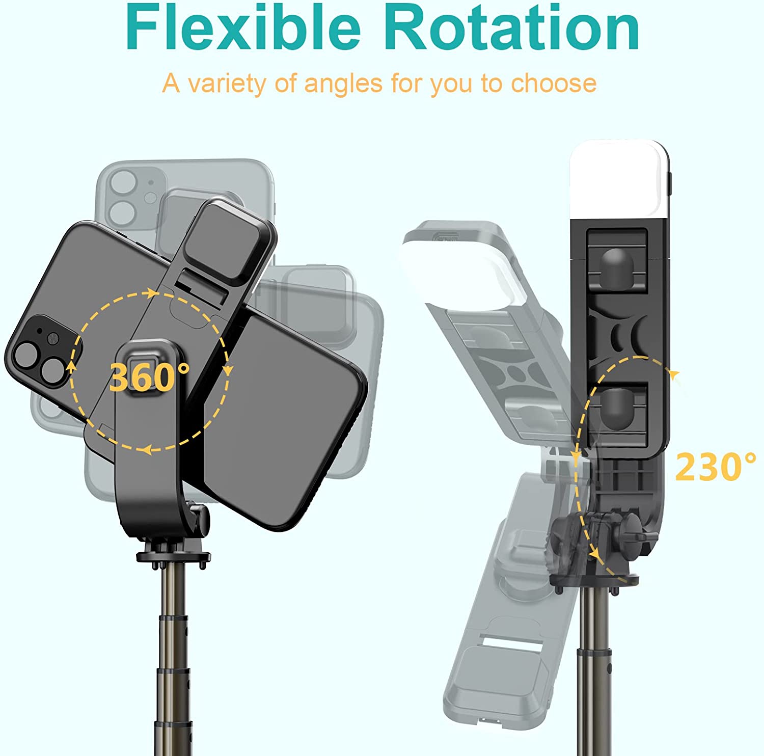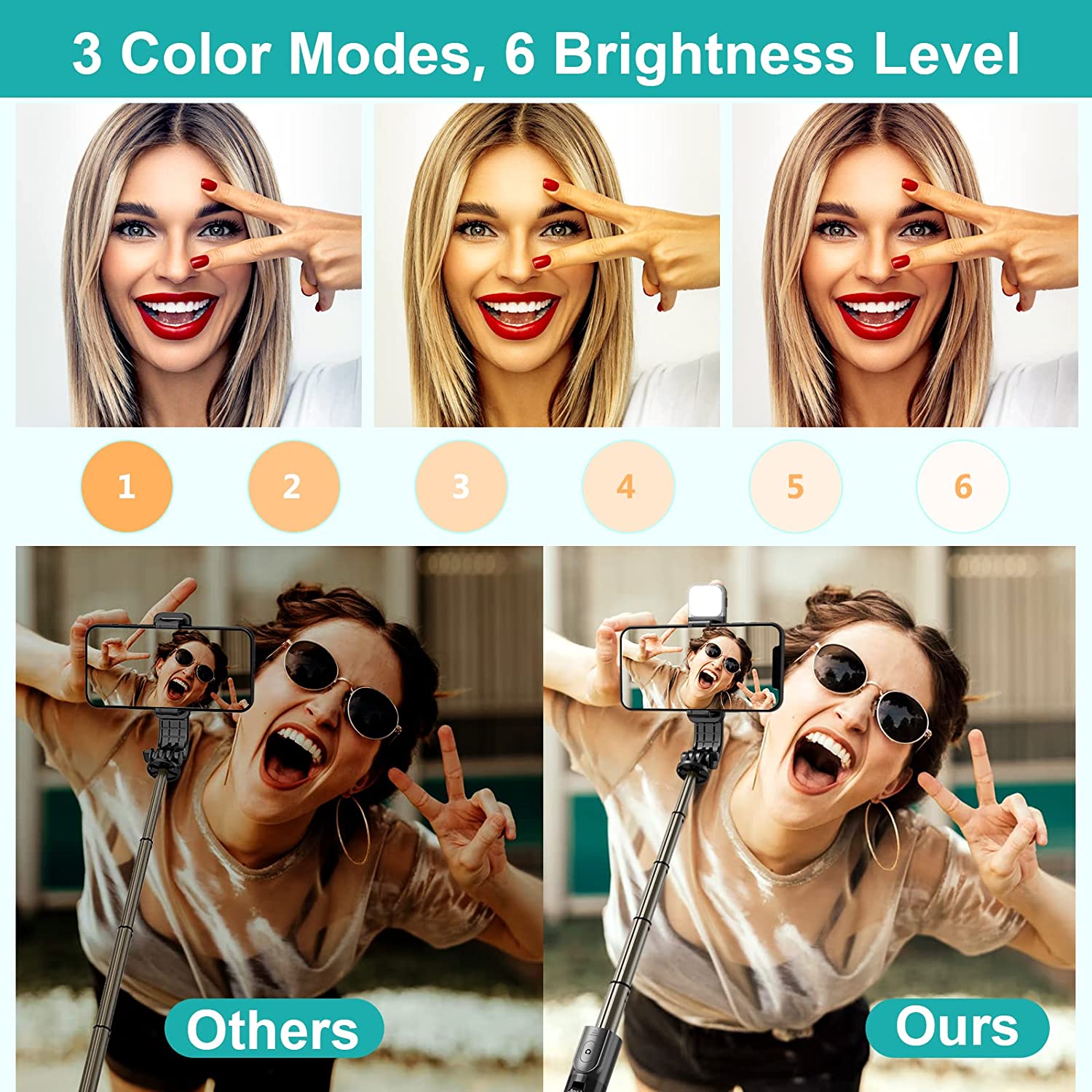 • 【Three Color Temperature Options】This mini selfie stick tripod comes with three-color fill light with six brightness levels for clearer, brighter photos without the need for a ring light.This is worth considering when you want to take pictures in the dark, such as at night.