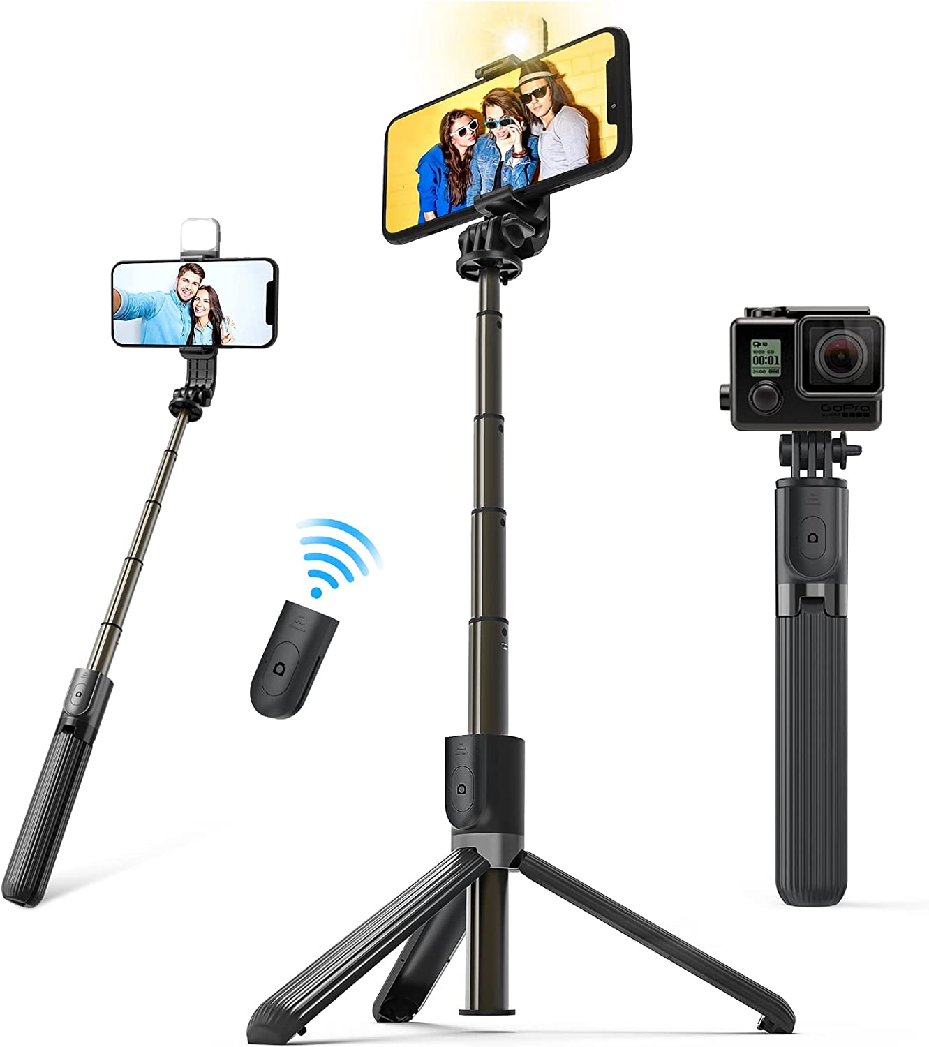 • 【Enhanced Compatibility】 The gopro selfie stick phone holder has an extended size of 2.5-3.6 inches, suitable for most smartphones. Bluetooth remote control works on iOS (5.1 and above) and Android (4.4 and above), such as iPhone 14/13/13 Pro/12 Pro/11/XS MAX/XR/XS/X/8/7 /6, Samsung Galaxy S10/S10/S9/S8/S7/S6/Note.
