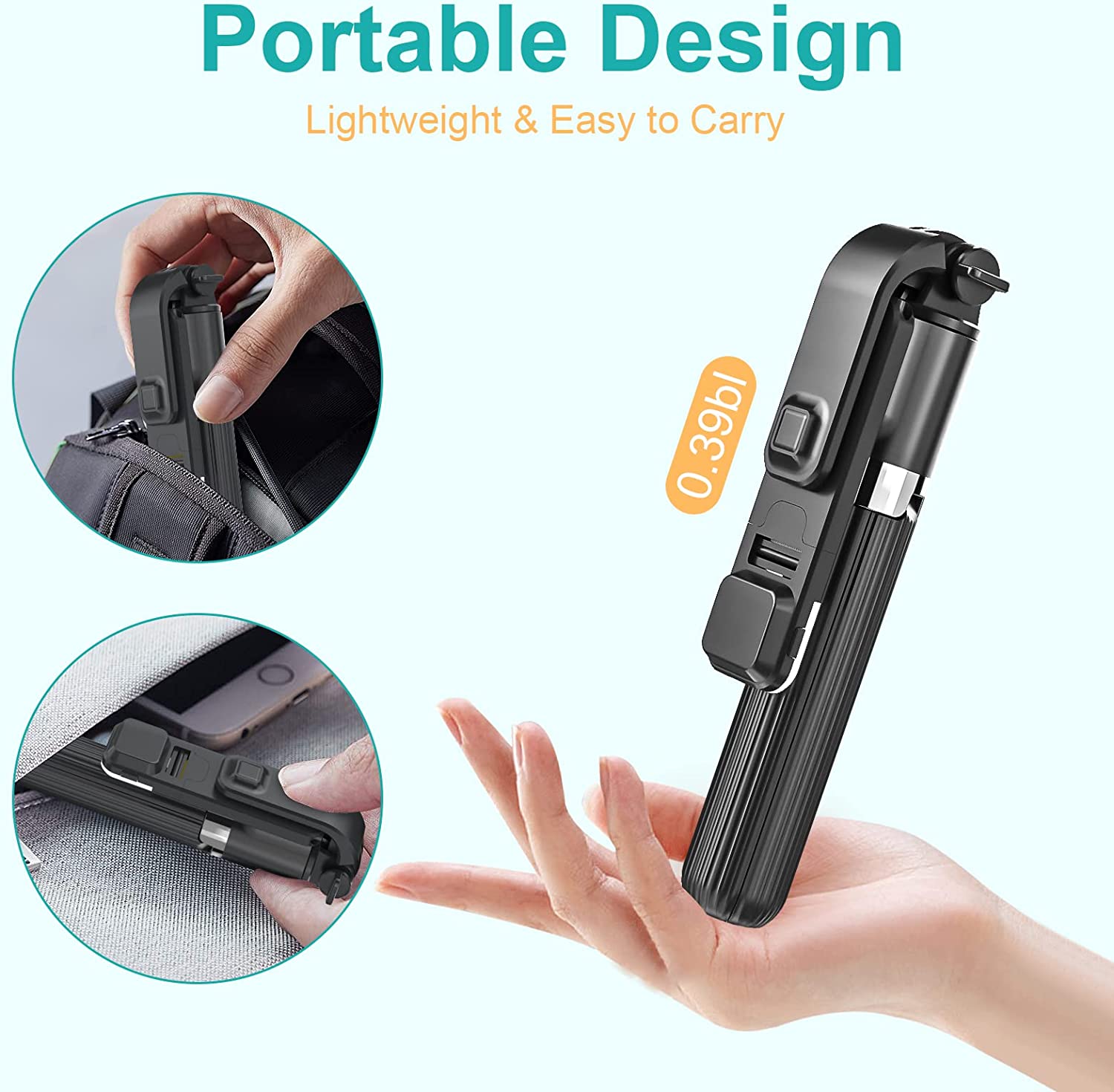 • 【Lightweight Design】The portable selfie stick has a minimum length of 7.5 inches, can be extended to 33.2 inches, and weighs only 6.34 ounces. The selfie stick adopts a 5-joint retractable lightweight aluminum alloy rod, which has a wider field of view and is more stable.