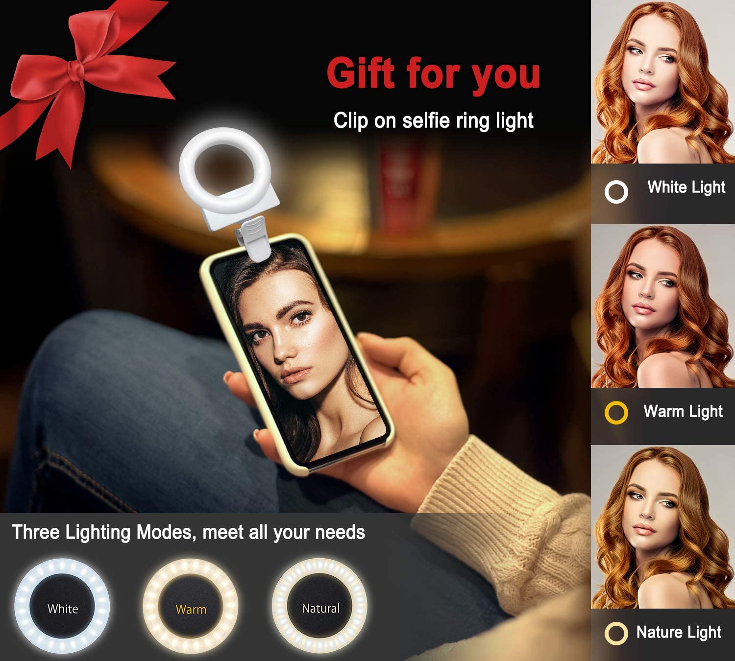 • You will receive a face tracking holder and a clip on selfie ring light. You will be able to make videos at night or take great selfies in dark areas