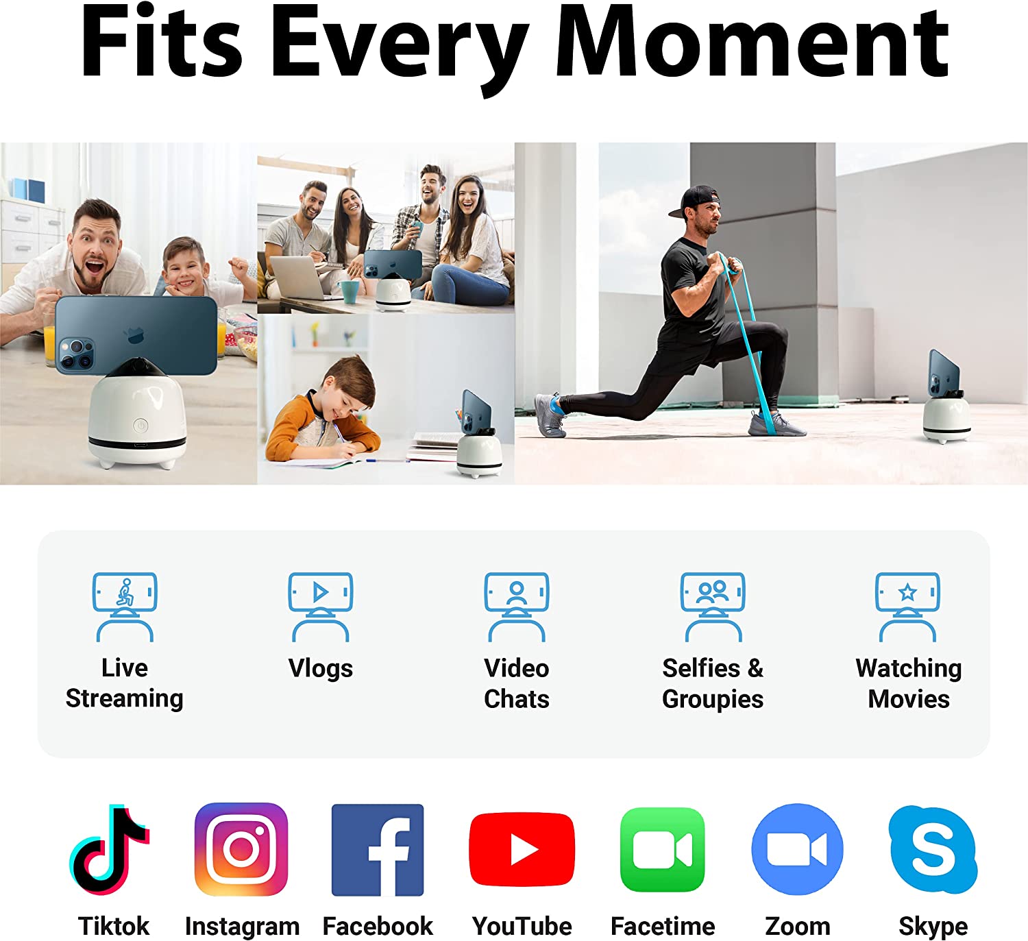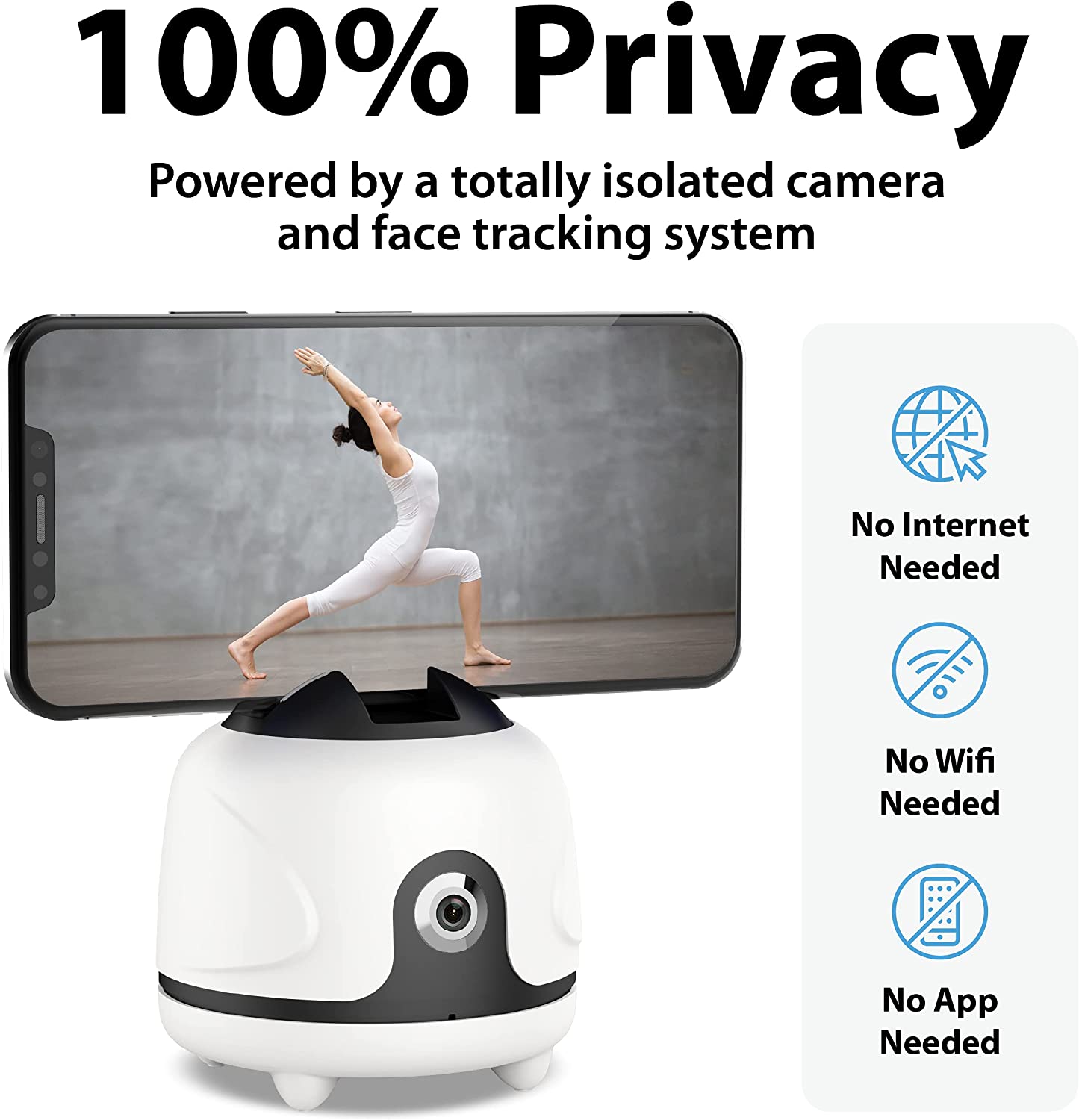 • 💘100% Privacy Safe: Tripod for cell phone uses a built-in and totally isolated camera and face tracking system and does NOT require any app / Wifi / Internet. It is 100% privacy safe. Your perfect movement is with you only.
