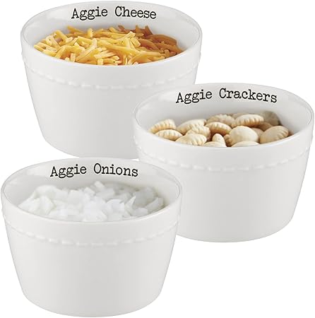 47th & Main Football Themed Ceramic Serveware, Chili Condiment Set, Aggies