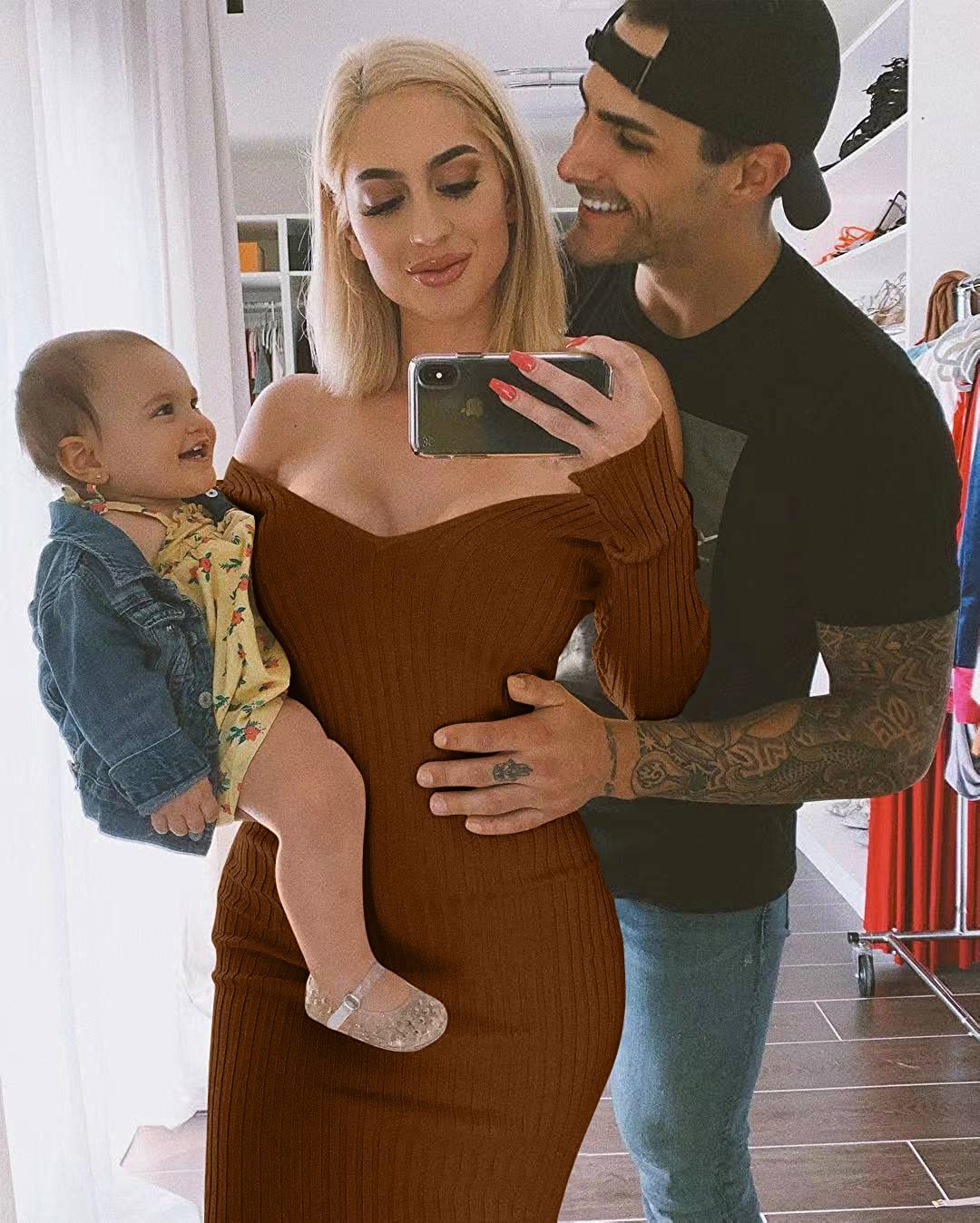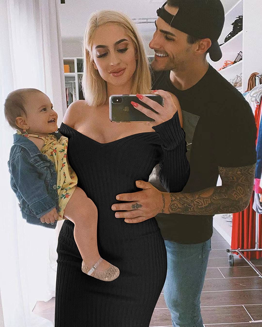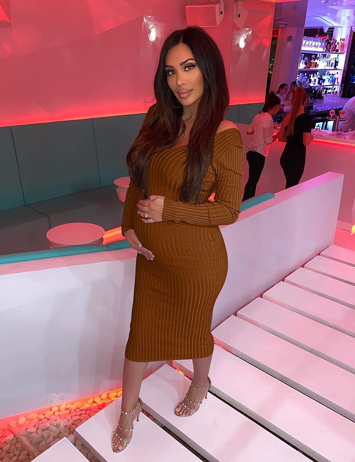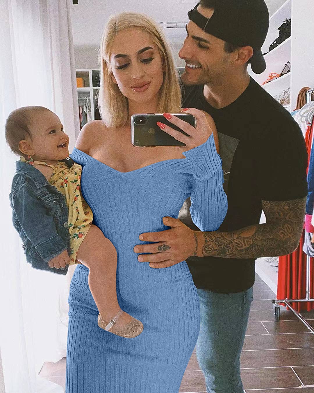 BEAGIMEG Women's Sexy Long Sleeve Off Shoulder Knit Bodycon Long Dress