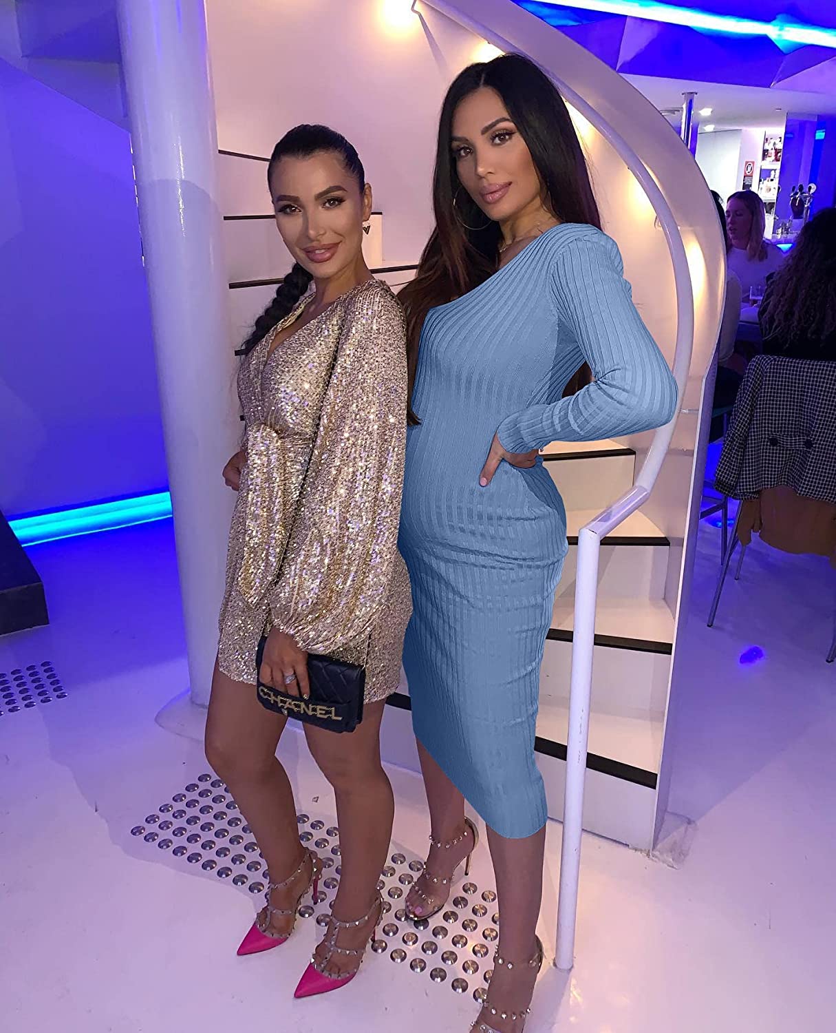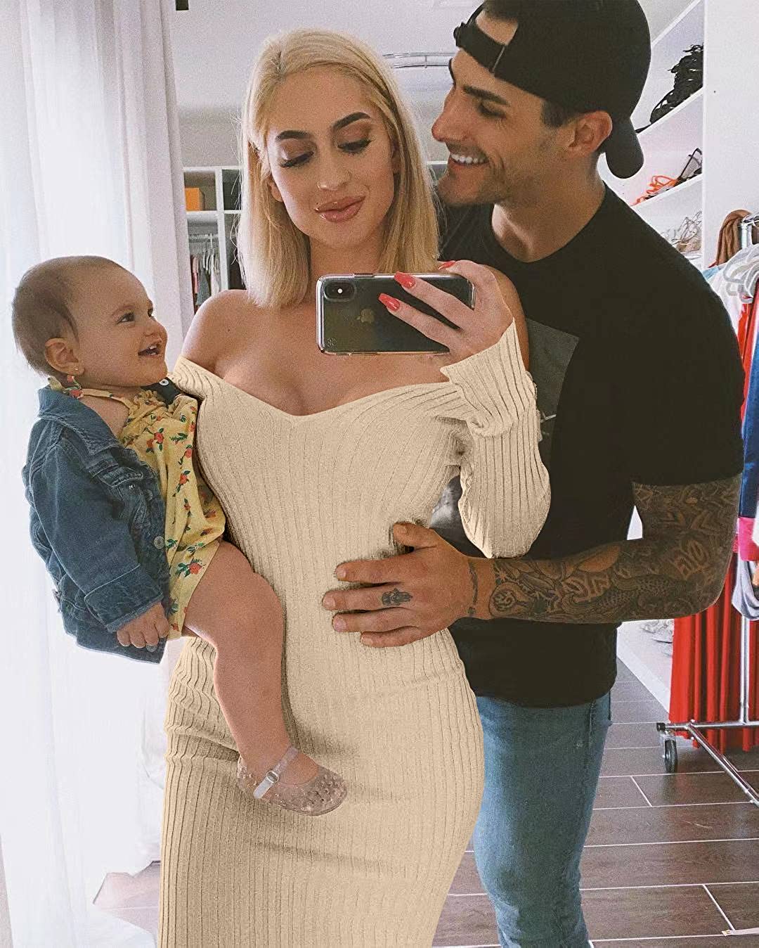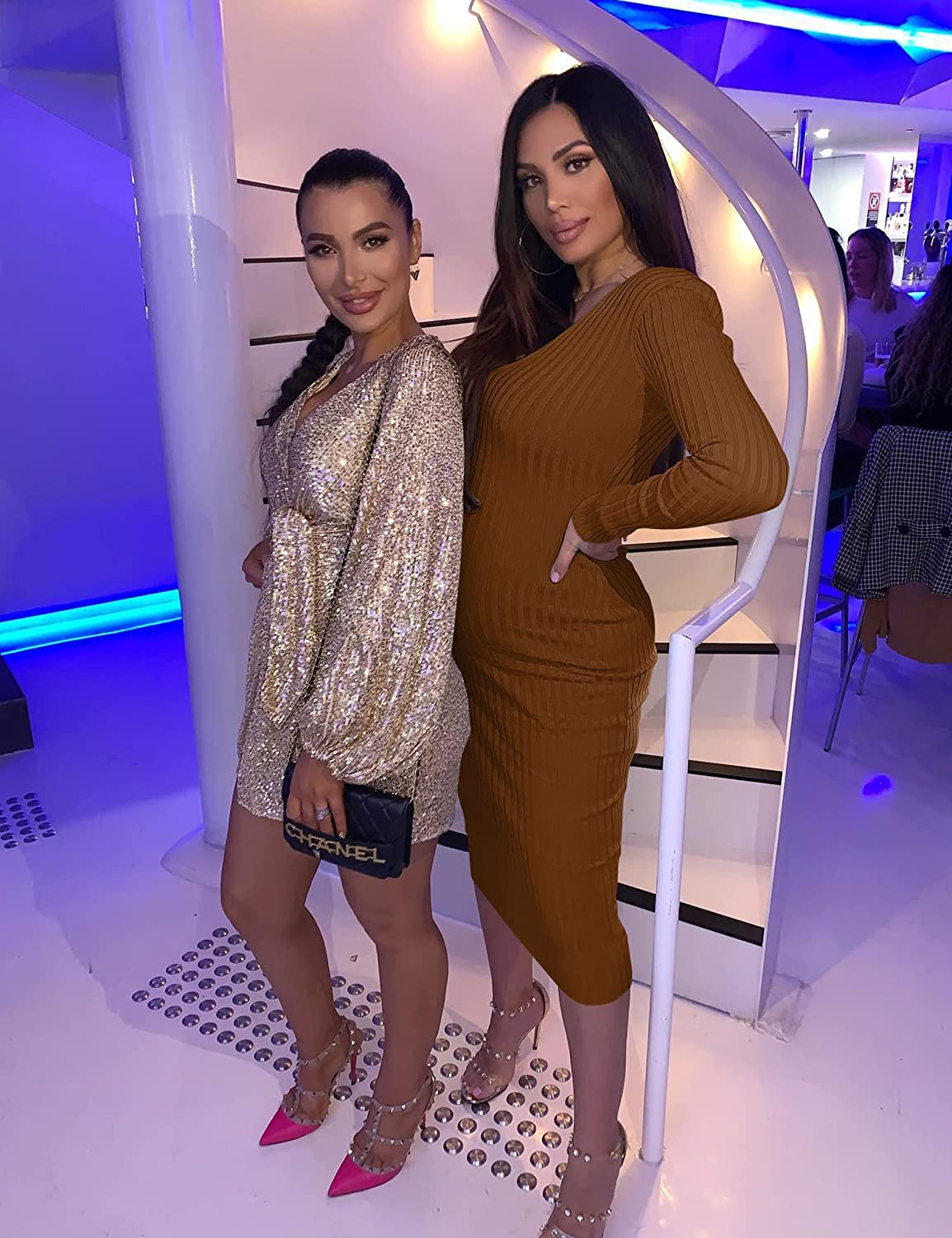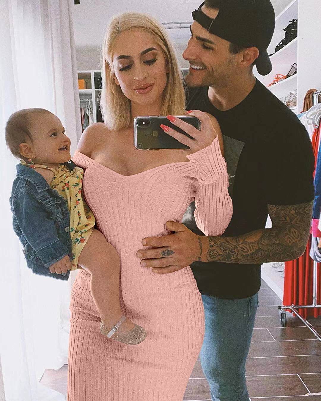 • Feature:Pull On closure,V neck,off shoulder design,above the Ankles ribbed dress,sweater,knit,long sleeves,good for fall winter spring