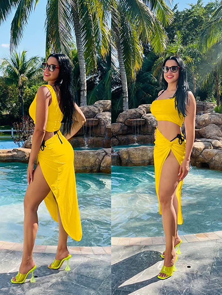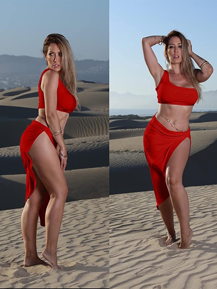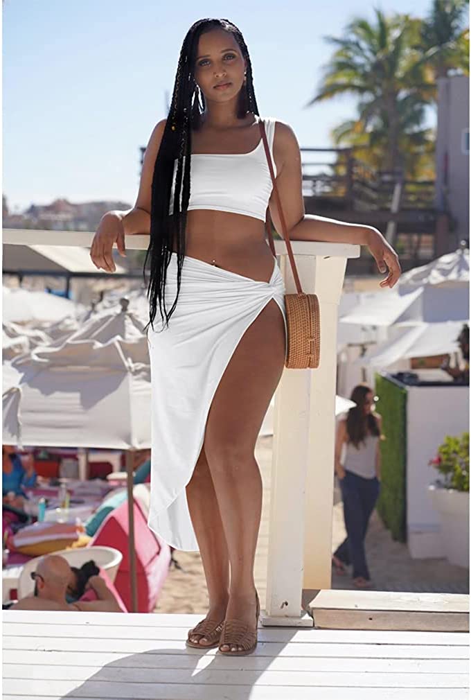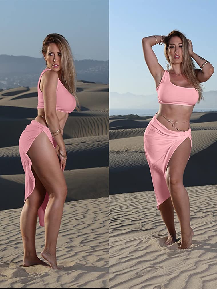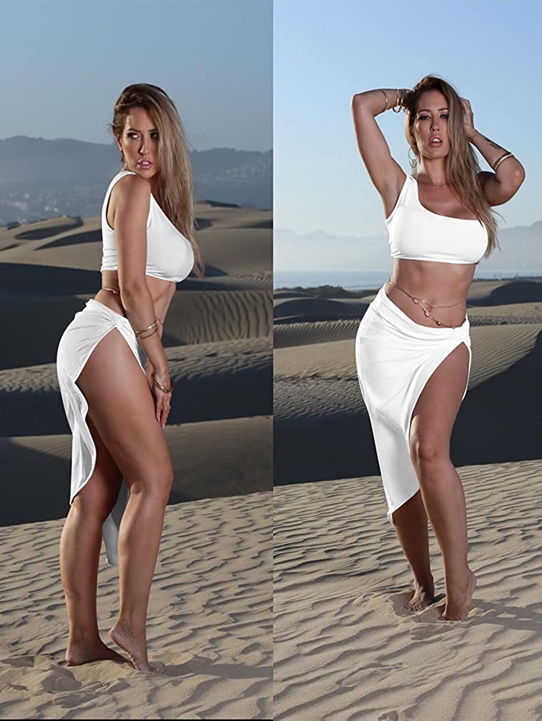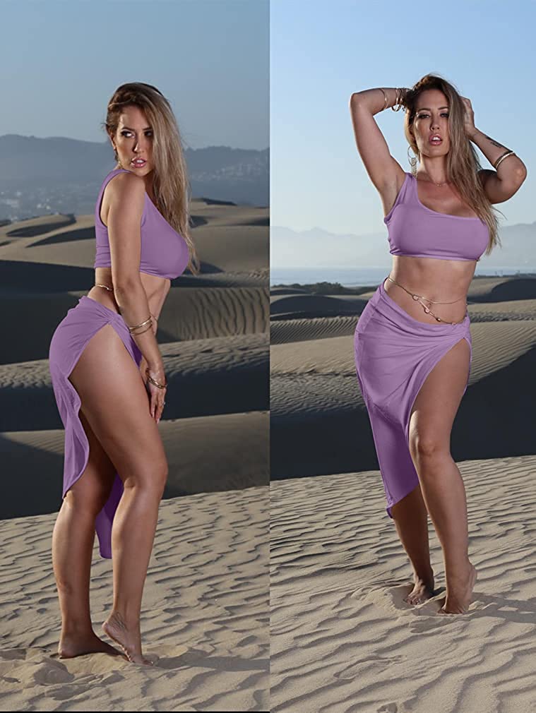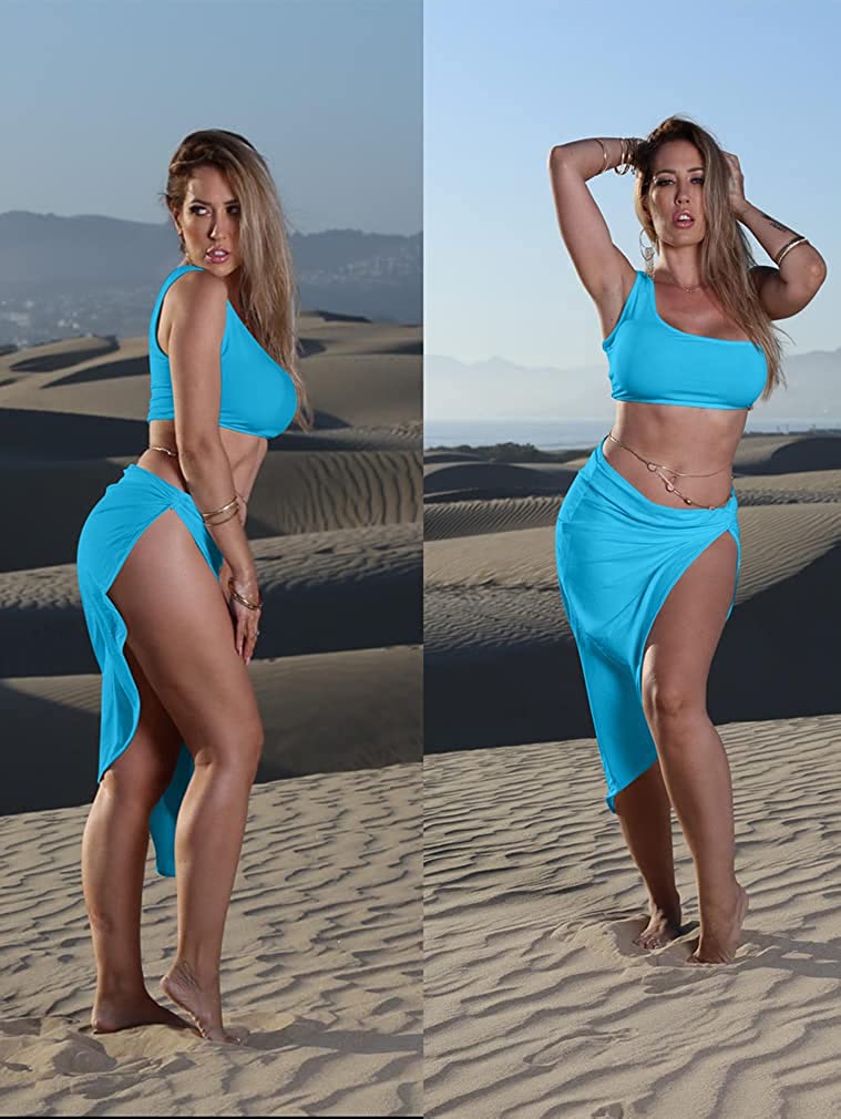 • Features:irrgular hem,draped,side split,sleeveless one shoulder crop top ,skirt.You can only wear top and then match your own skirt,pants,jeans,shorts.You can wear the skirt alone and match your tops