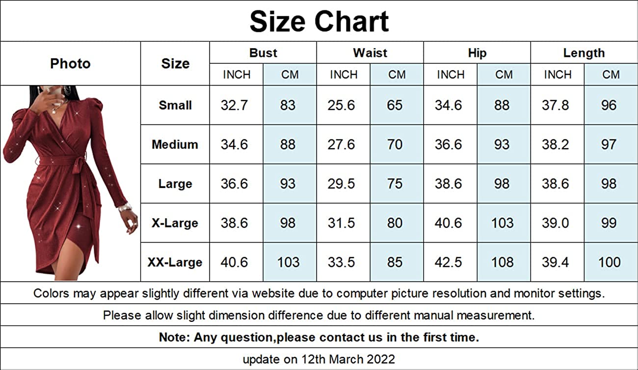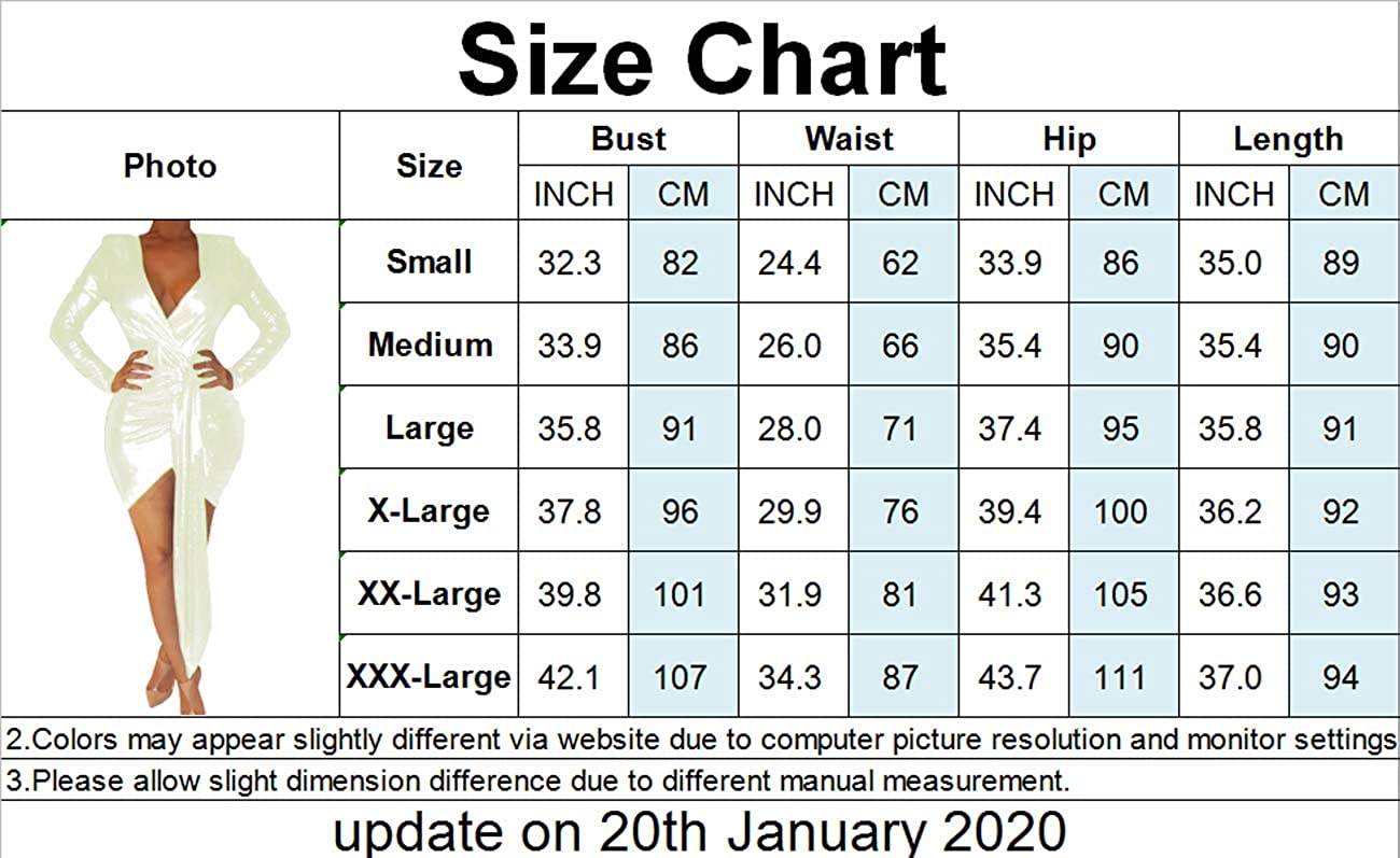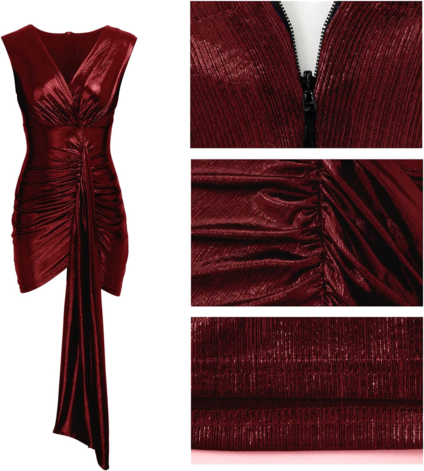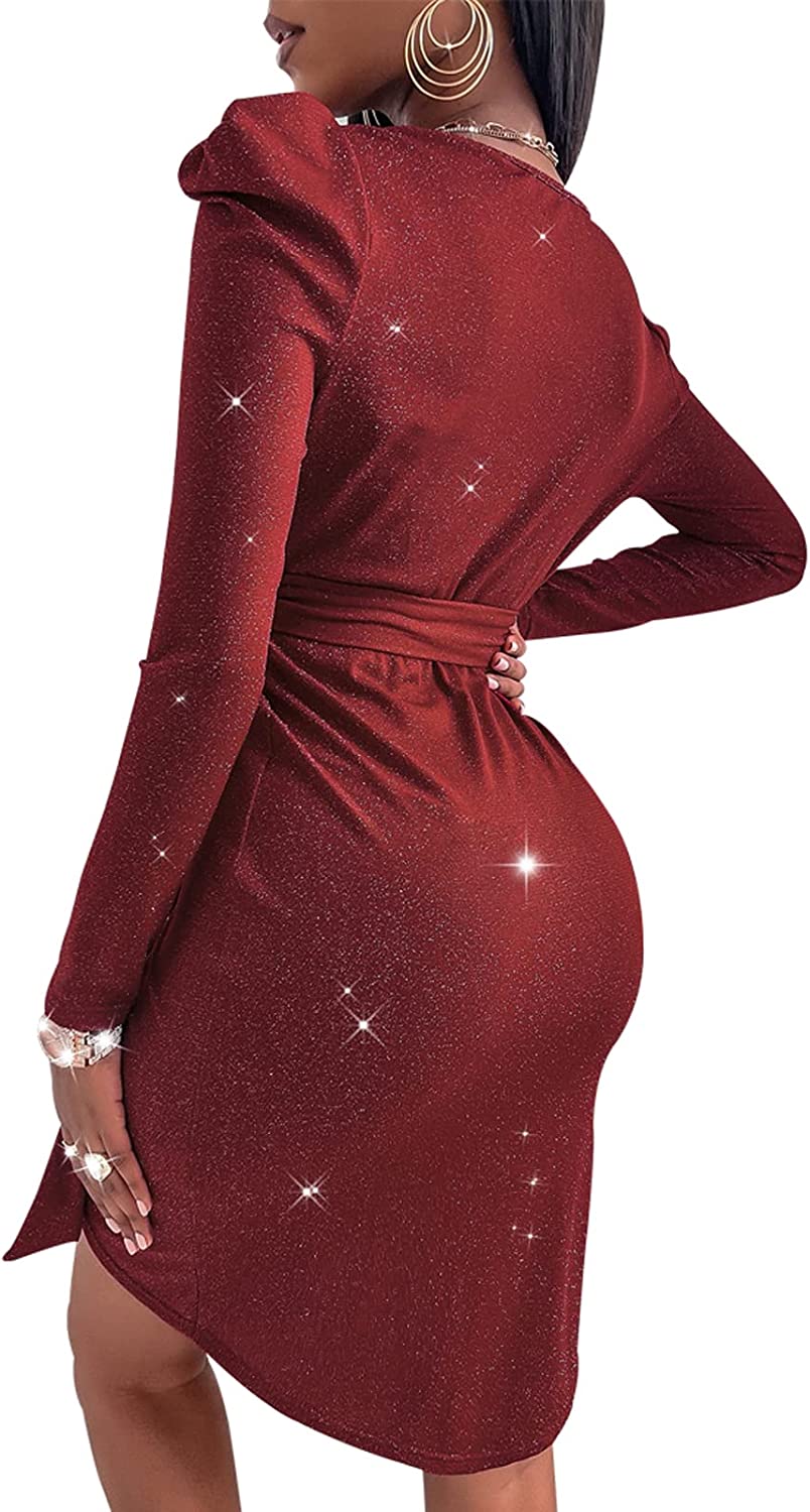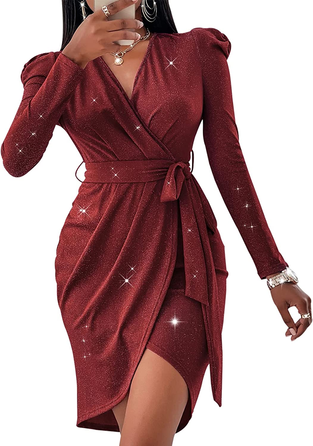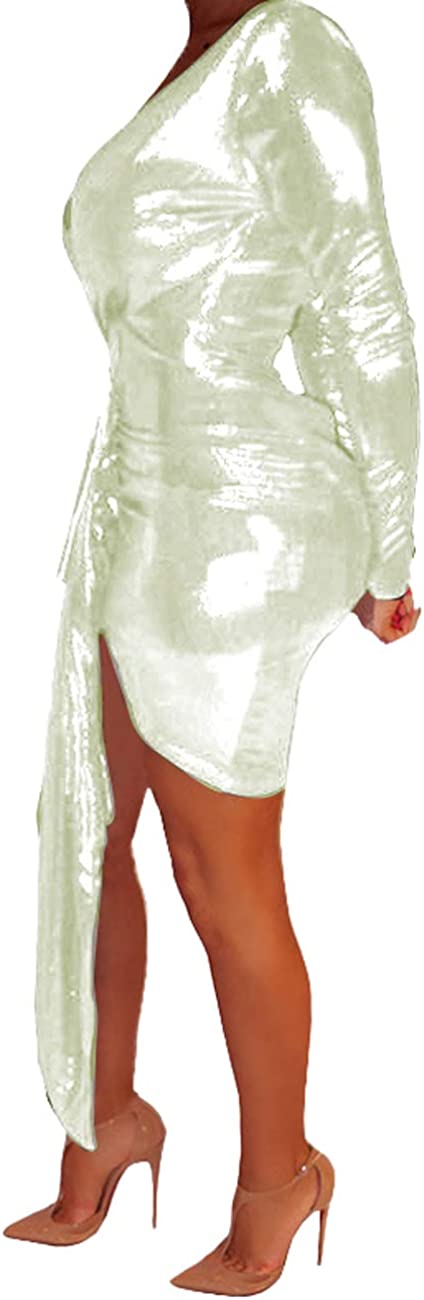 • Feature:Not lined,invisible zip,sexy wrap front and deep v neck,long sleeve,bodycon,slim fit,metallic glittery,solid color,elegant and sexy,above the knee length,asymmetrical.