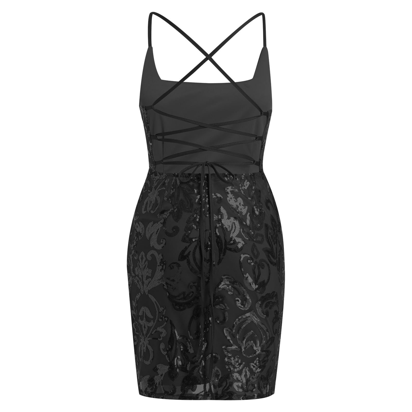 • ❤ Package Include:1PC Dress; Spaghetti Straps, Backless, Empire Waist, Lace-up Straps, Solid Color, Sequins, Above Knee Length, Hidden Zipper at Back, Slim Fit; Women's Fashion Dress Spaghetti Straps Sparkly Floral Sequins Bodycon Mini Dress Party Nightclub.