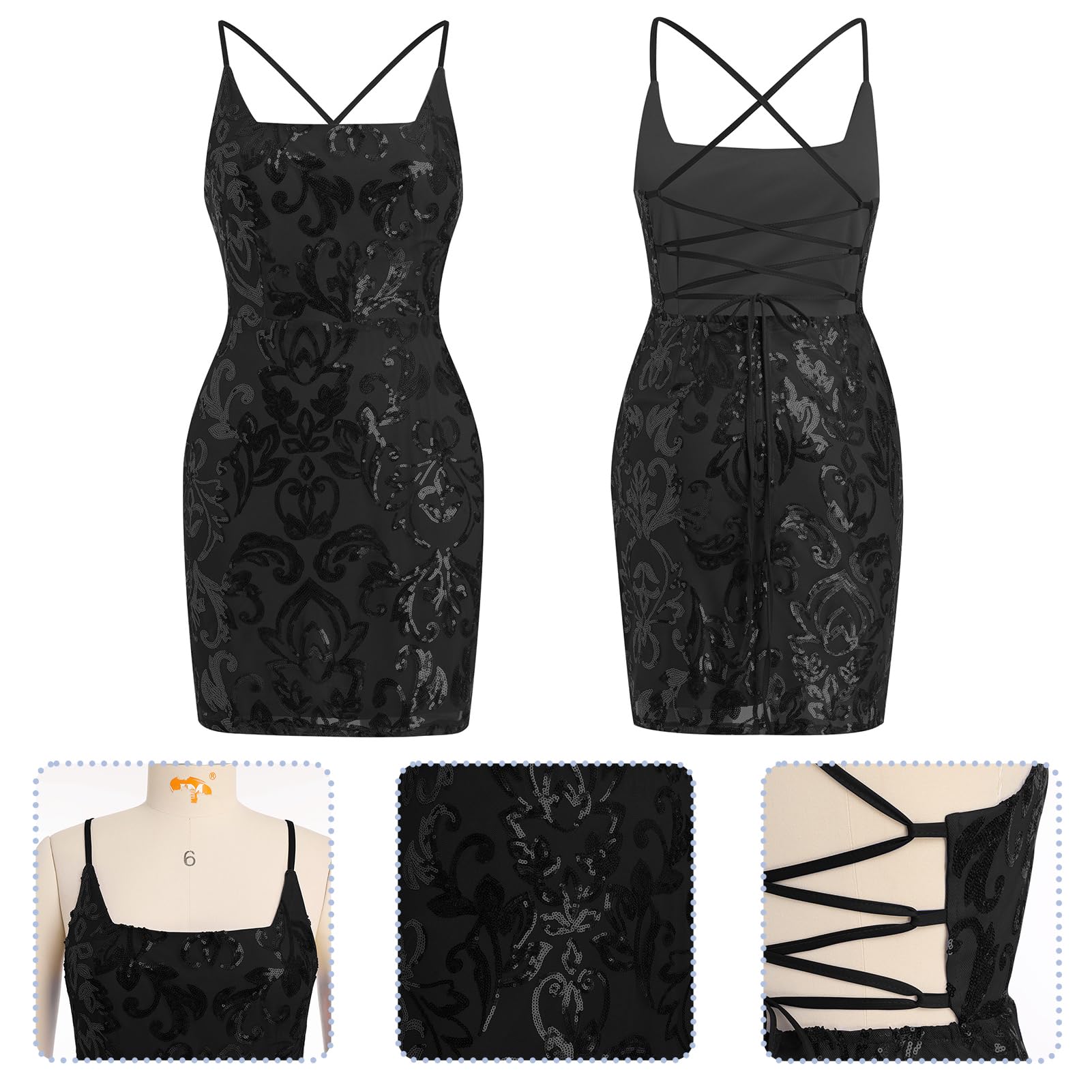 • ❤ Design: Spaghetti straps sparkly sequins bodycon mini dress, can demonstrate your charming collarbone and release your charm. Open back with lace-up straps and hidden zipper at back, convenient to wear, perfectly shows off your tender back and make it loose or tight to fit different body shapes.