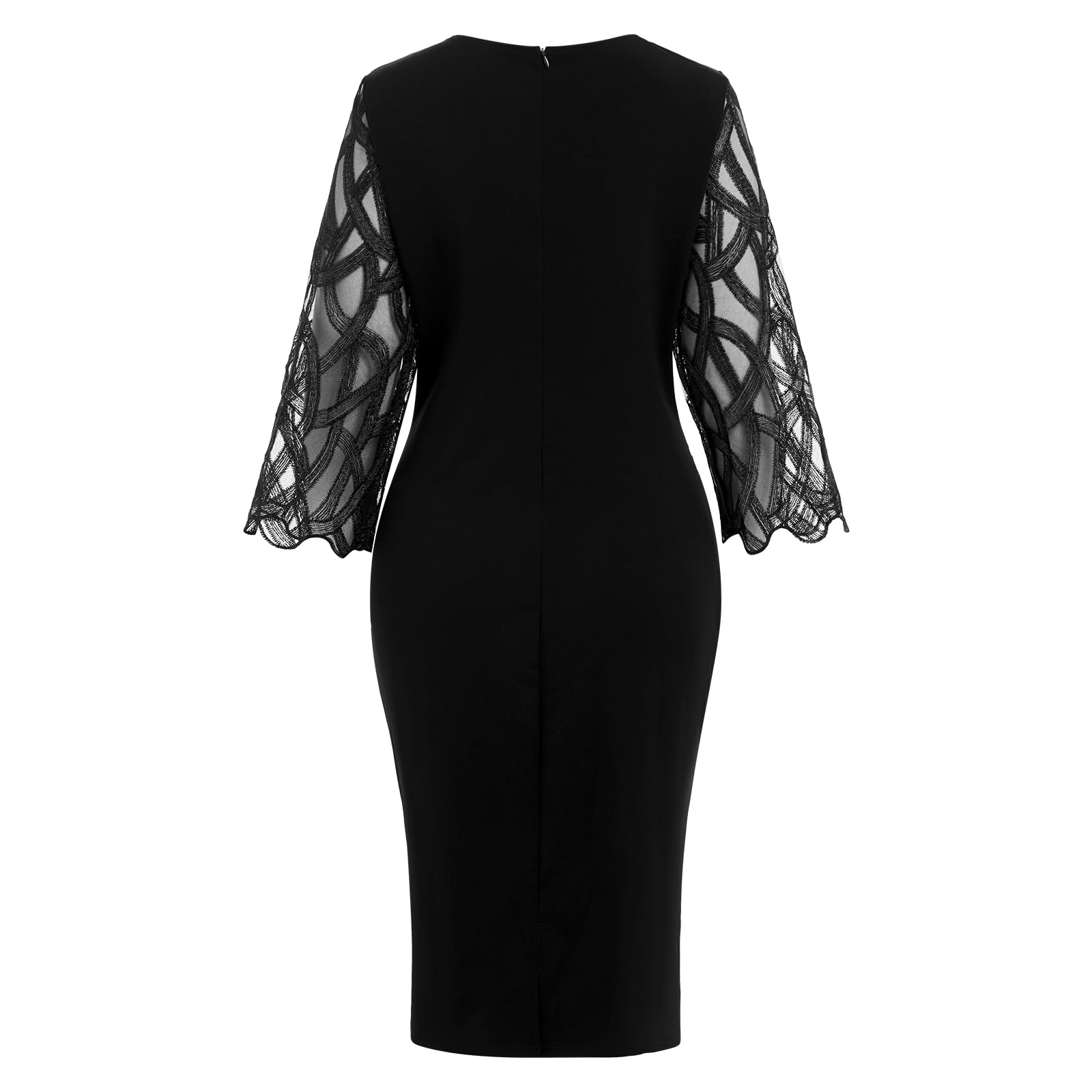 • ❤ Package Include: 1PC Dress; 3/4 Sleeve, Illusion Round Neck, Sequins, Solid Color, Mesh, Hidden Back Zipper, Split, Above Ankle Length, Slim Fit; Women's Plus Size Fashion 3/4 Sleeve Round Neck Sequins Bodycon Dress Party Dress.