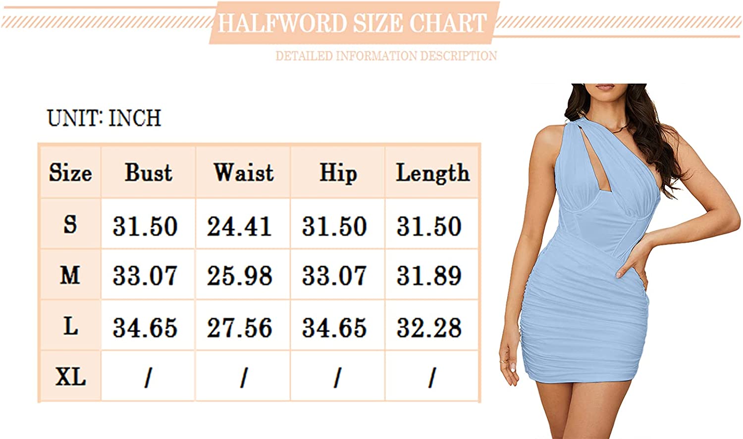 Halfword Women’s Sexy One Shoulder Cutout Ruched Bodycon Mesh Croset Dress Going Out Night Party Club Mini Short Dresses
