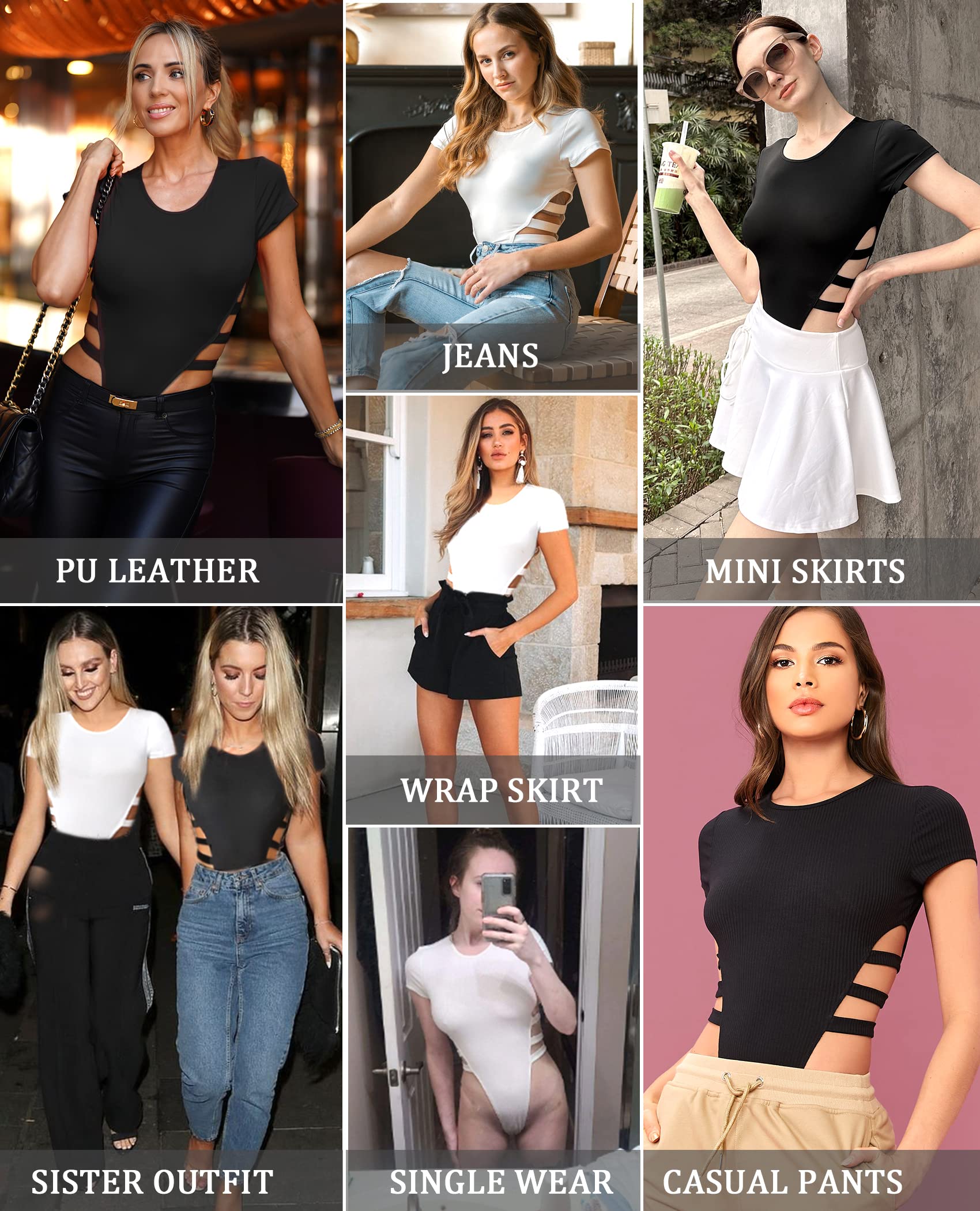 • 【Design】Short sleeve bodysuit for women features crew neck, and cut out design,It will show your stunning curves. With snap crotch closure on the bottom, this bodysuit top is easy to put on or take off.
