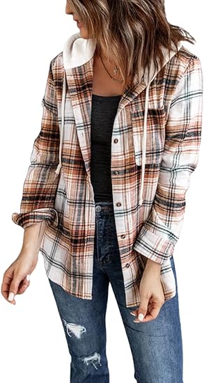 INFITTY Women's Buffalo Plaid Hoodie Long Sleeve Jacket Button Drawstring Casual Fall Shirts with Pocket