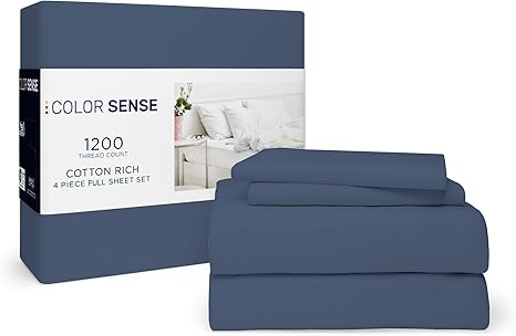Color Sense 1200 Thread Count King Navy Sheet Set, Hotel Luxury Cotton Rich Ultra Soft Sateen Sheets, Easy Care Bed Sheet Set with Deep Pocket (1 Flat Sheet, 1 Fitted Sheet & 2 Pillowcases)