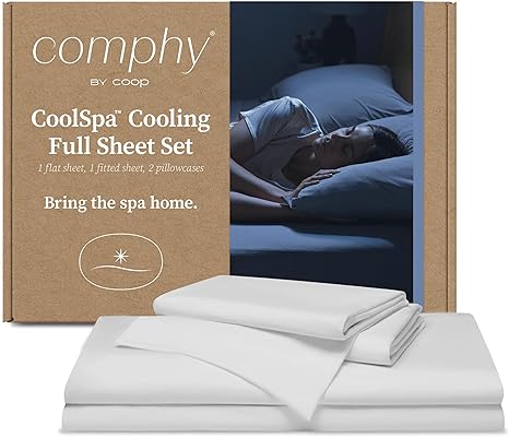 Comphy by Coop CoolSpa Cooling Bed Sheets, 4 Piece Full Sheet Set, White Breathable Cooling and Super Soft Sheets, Luxury Spa & Hotel Quality Full Sheets, Cooling Sheets Full Size Bed Set