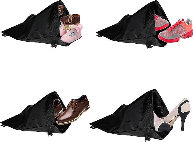 Smartek Black Nylon Water-repellent Multipurpose Shoe Bags (Set of 4)