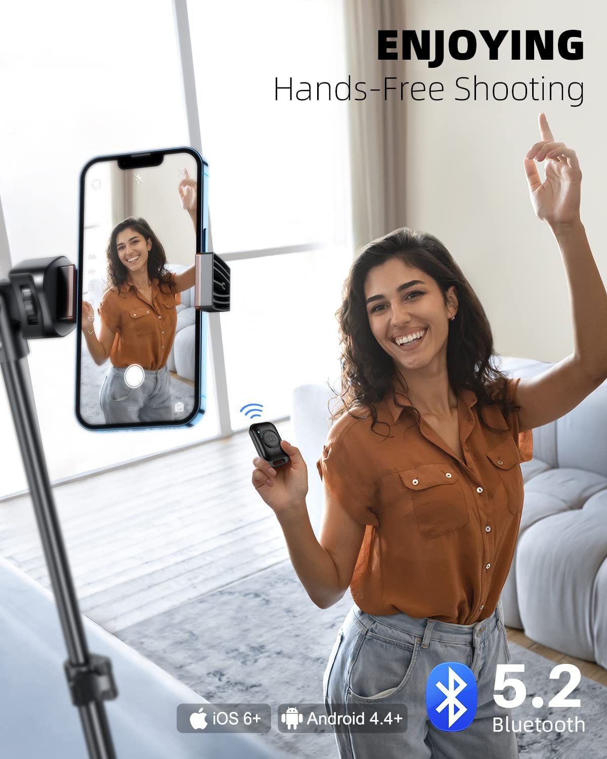 • Wireless Shooting, Free Creation: With updated sensor chip, the wireless clicker can connect to your phone in 1 second, no traditional disconnecting problem. Taking satisfying photos and videos within 33ft/10m is piece of cake with this cell phone tripod.