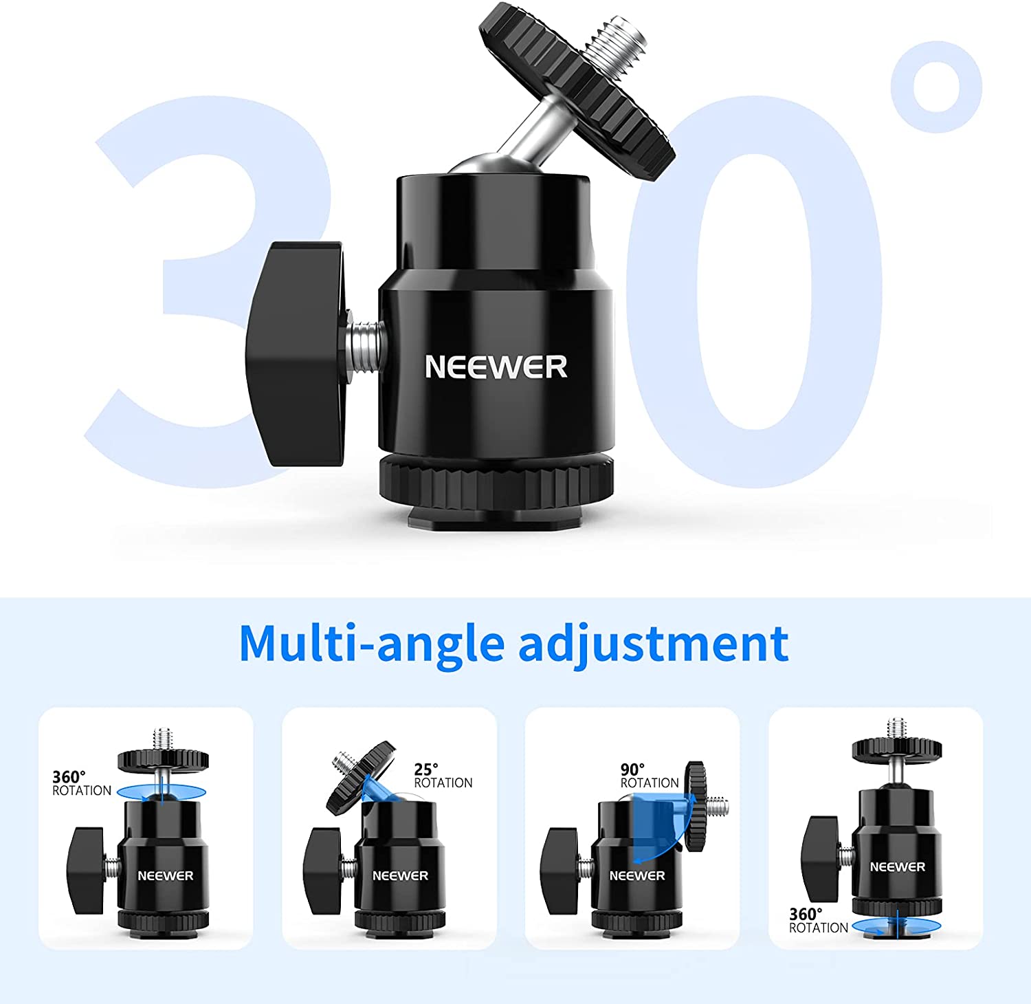 Neewer 1/4” Camera Hot Shoe Mount with Additional 1/4” Screw 2-Pack, Mini Ball Head Hot Shoe Mount Adapter for Cameras, Camcorders, Smart Phone, Video Light, Microphone, Ring Light - ST17