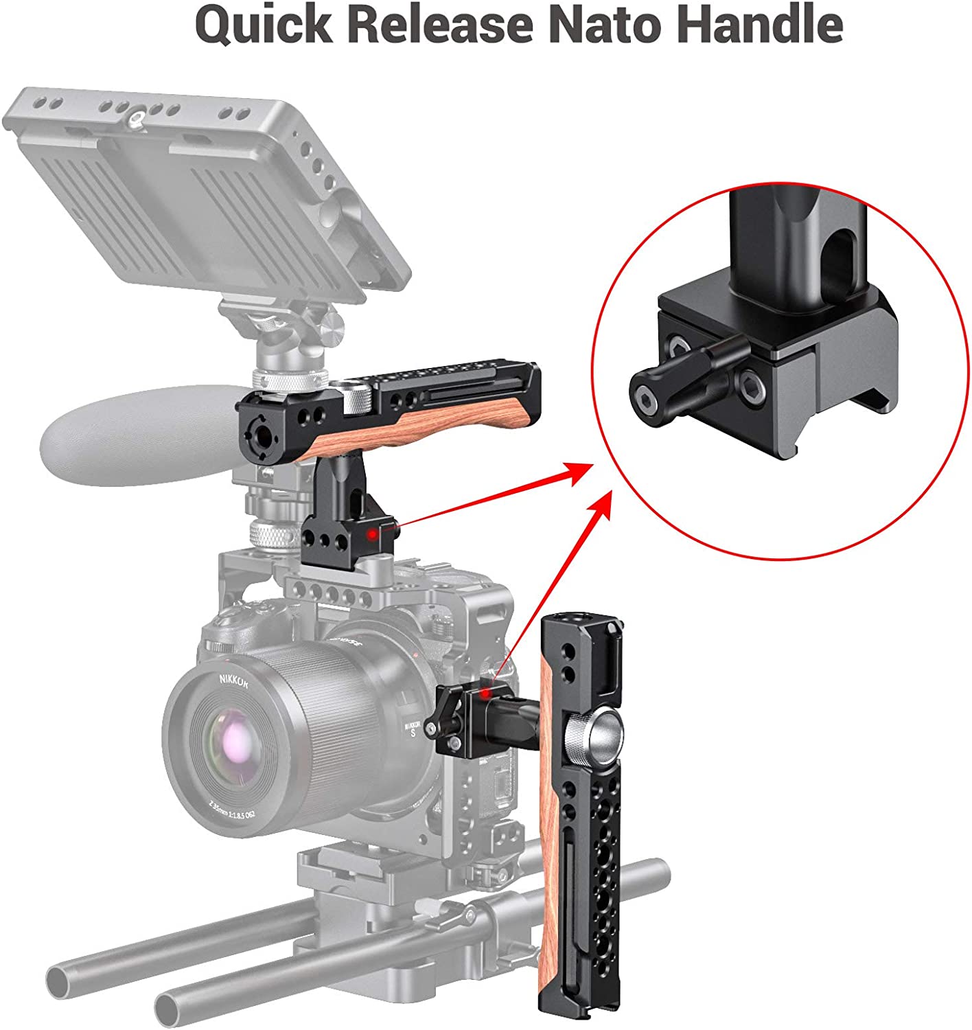 • 【QR NATO HANDLE】SmallRig Nato Handle grip is designed to provide a comfortable handheld use for accessory such as monitor, microphone, light and magic arm. It is compatible with SmallRig Camera Cage such as SmallRig2203, SmallRig2254, SmallRig1889