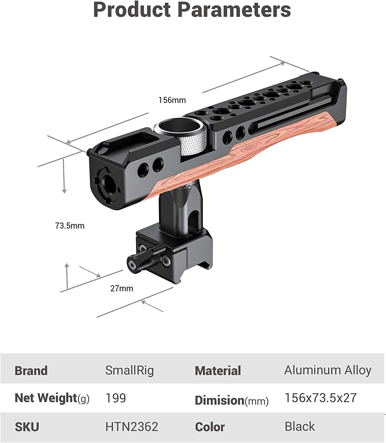 • 【COMFORTABLE GRIP】SmallRig HTN2362 integrates with natural rosewood without any painting, which could make it more comfortable to use and provide a comfortable handheld shooting for cameramen