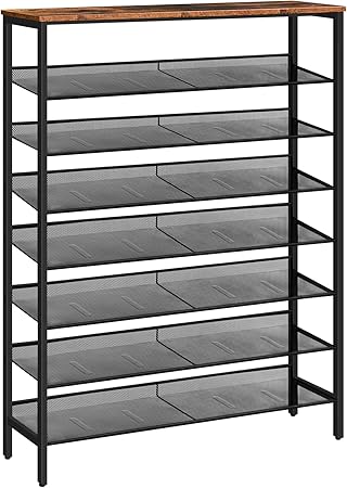 HOOBRO 8-Tier Shoe Rack Organizer, Large Capacity Metal Shoe Shelf, Sturdy Shoe Storage with Top Shelf, for 32-40 Pairs of Shoes, Space Saver, Industrial, Rustic Brown and Black BF118XJ01