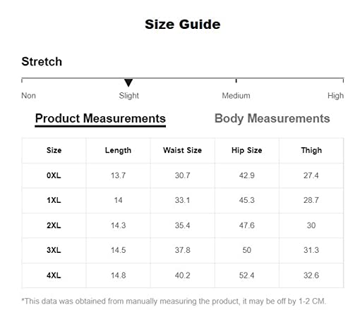 Details: Size Chart: Large Plus: Length:14.8", Waist Size:33.1", Hip Size:44.9" X-Large Plus: Length:15.4", Waist Size:35.4", Hip Size:47.2" XX-Large Plus: Length:15.9", Waist Size:37.8", Hip Size:49.6" 3X-Large Plus: Length:16.4", Waist Size:40.2", Hip Size:52" 4X-Large Plus: Length:16.9", Waist Size:42.5", Hip Size:54.3"