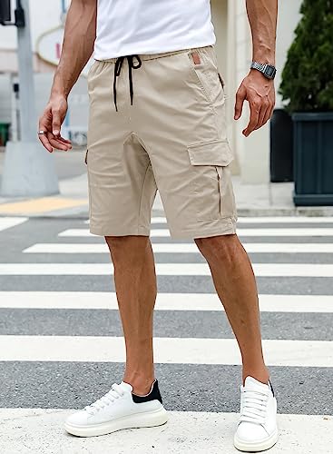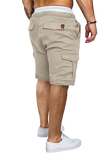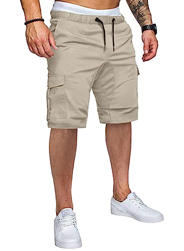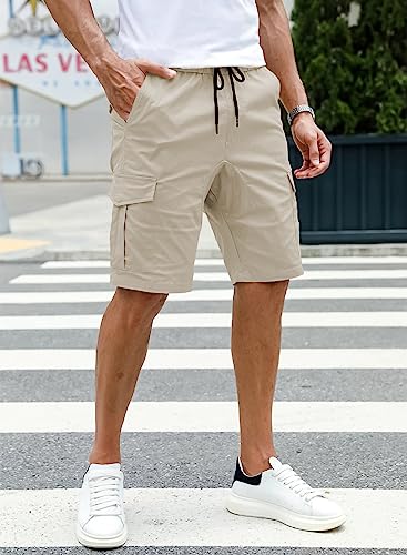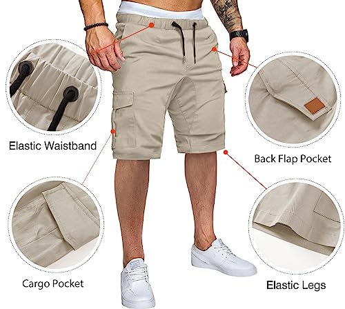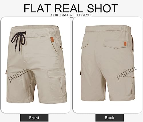 JMIERR Mens Casual Cargo Shorts - Cotton Drawstring Stretch Summer Beach Shorts Twill Chino Short with 6 Pockets for Men,US34(M),A Khaki4