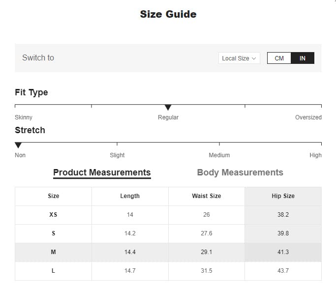 Medium: Length: 14.4", Waist Size: 29.1", Hip Size: 41.3",