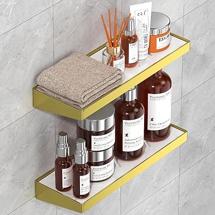 ASTOFLI Luxury Gold Marble Shower Caddy Shower Shelves, Drill-Free Gold Shower Organizer For Bathroom, Kitchen & Parlor, Elegant Gold Shower Rack & Shelf, 2-Pack