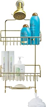Better Houseware Shower Caddy - Shower Organizer Shelves with Hooks, Rustproof Shower Storage Rack for Shampoo, Conditioner, Soap, Bath Sponge - Gold