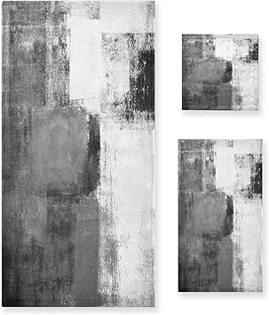 Black and White Bath Towels Set, 3 Piece Modern Abstract Black Grey Towels Set(1 Bath Towel 1 Hand Towel 1 Washcloth), Soft Absorbent Decorative Bathroom Towels for Bath, Fingertip, Hair, Face