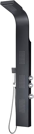 ANZZI Shower Panel 66" Body Massage 3-Jetted Shower Panel System with Heavy Rain Shower and Spray Wand in Black, Rainfall Waterfall Tower System with Handheld Shower (SP-AZ056)
