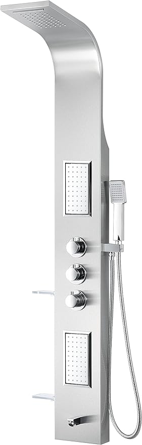 ANZZI Shower Panel Tower, Field 58 inch Long Turbo High Pressure Shower Head and Detachable Handheld Spray Rainfall Shower Panel in Brushed Steel, Rain Shower 1.8 gpm 2 Body Jets Combo (SP-AZ042)