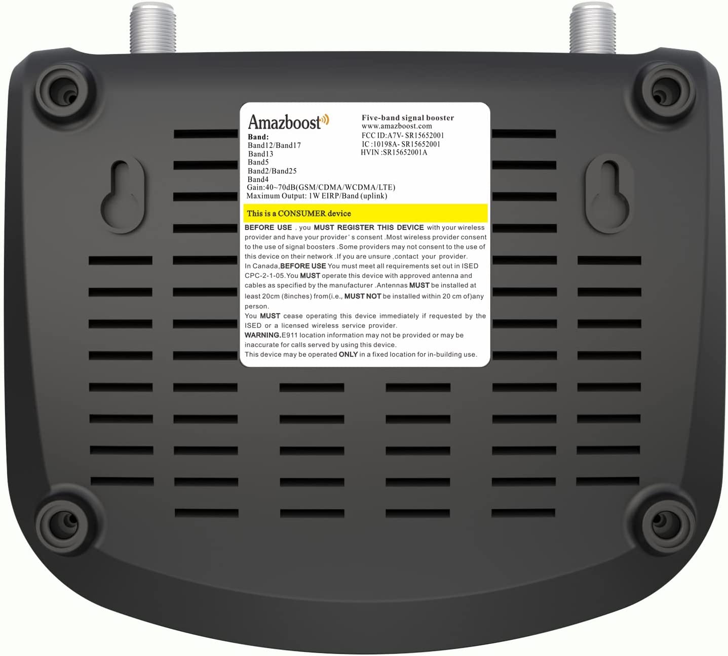 • 【FCC APPROVED】FCC ID:A7V-SR15652001. The booster is compliance with the requirements of the standards applied. Automatically Adjusts System Gain And Power Level To Get The Optimum Result. No Manual Intervention Needed. 3-year manufacturer's warranty