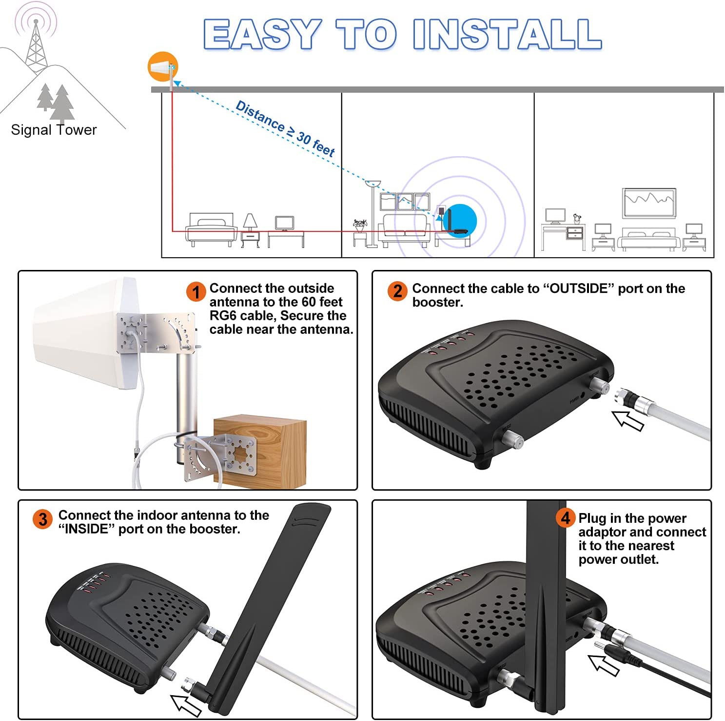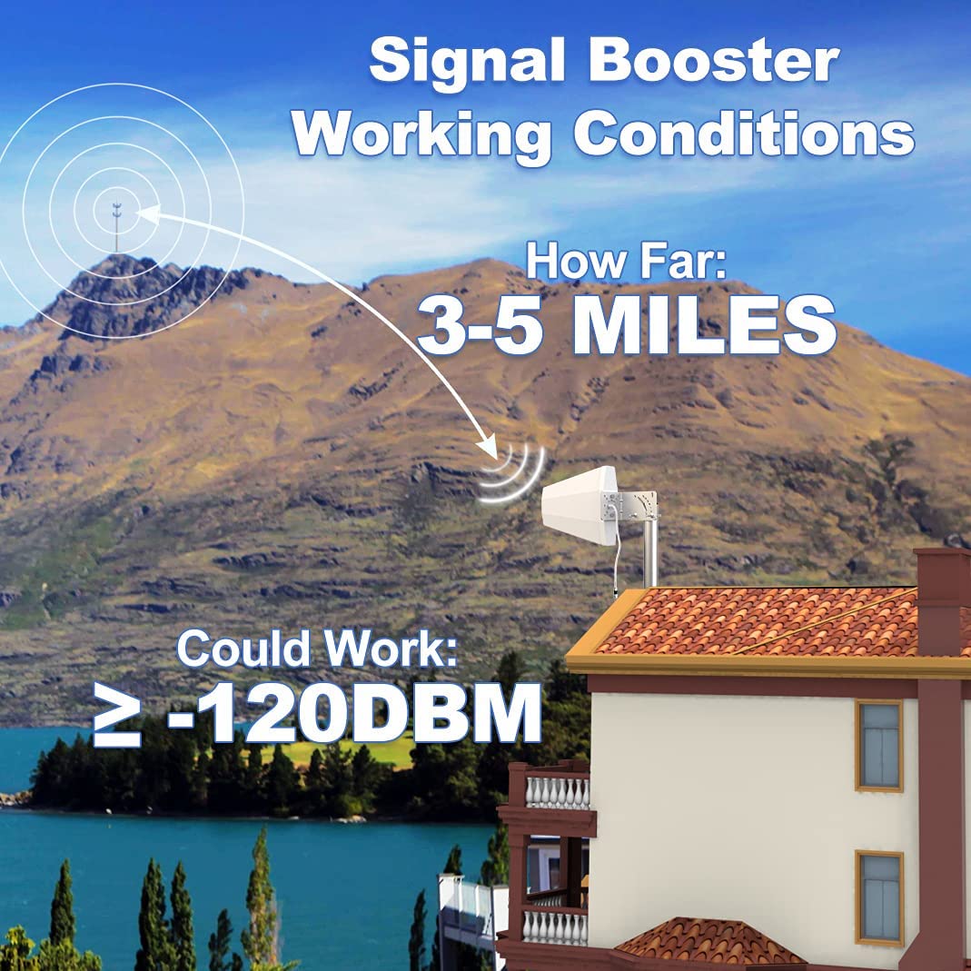 • 【LARGE COVERAGE】This booster comes with high gain directional antenna, Allow you to point it to the nearest signal tower more accurate and pick up weak signal, Enhances the signal up to 100X, Maximum communication distance range up To 3~5 Miles, Expanding the coverage up to 1,500sq ft