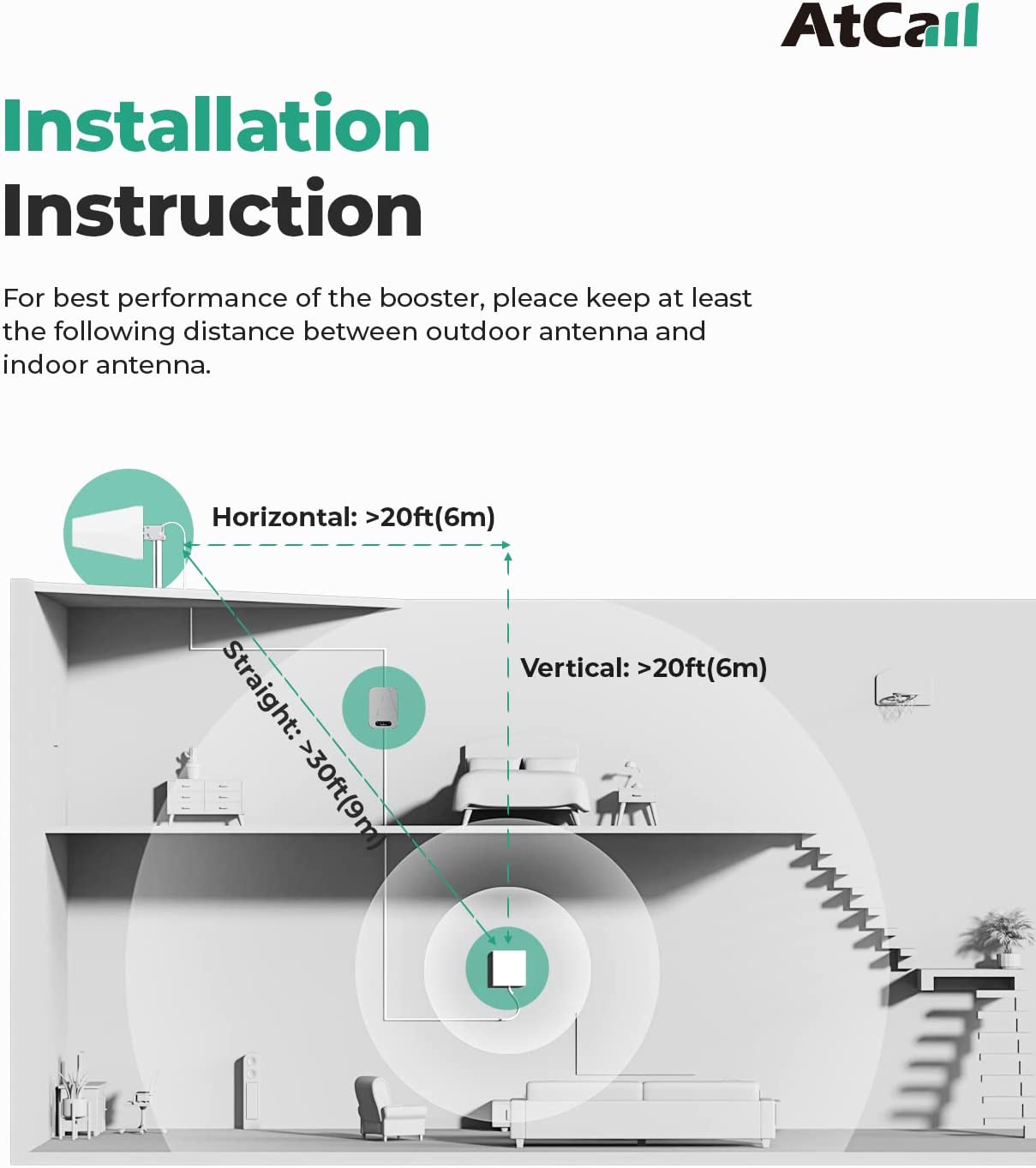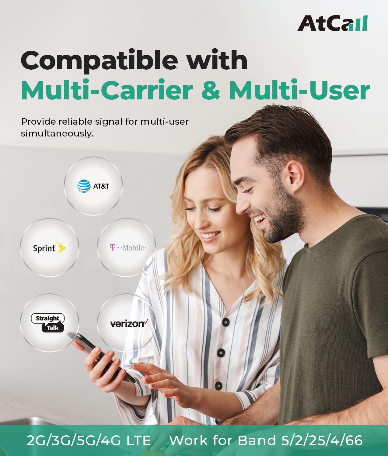 • 【Carriers and 5G Compatible】Work for Band 5/2/25/4/66. Please firstly check your band and the outside signal requires at least 1 bar for properly use. The cell phone booster supports carriers 2G 3G 4G LTE 5G, Such as: Verizon, AT&T, Sprint, T-Mobile, U.S. Cellular and more. Coverage up to 5000 sq.ft. The cell phone signal booster can boost the cellular signal for multi-user and multi-device simultaneously