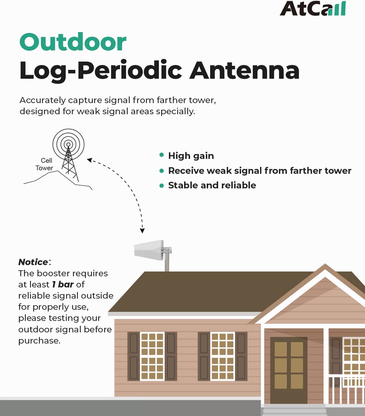 • 【Excellent Outdoor and Indoor Antenna】The Signal booster kit comes with a durable outdoor log-periodic antenna, high gain and more directional, it can accurately receive the signal from tower, and has a better reception effect than the omnidirectional antenna. Indoor is equipped with a Wall-Mounted antenna, which saves space and larger coverage. Enjoy the reliable cellular signal with your families, say goodbye to buffered pages