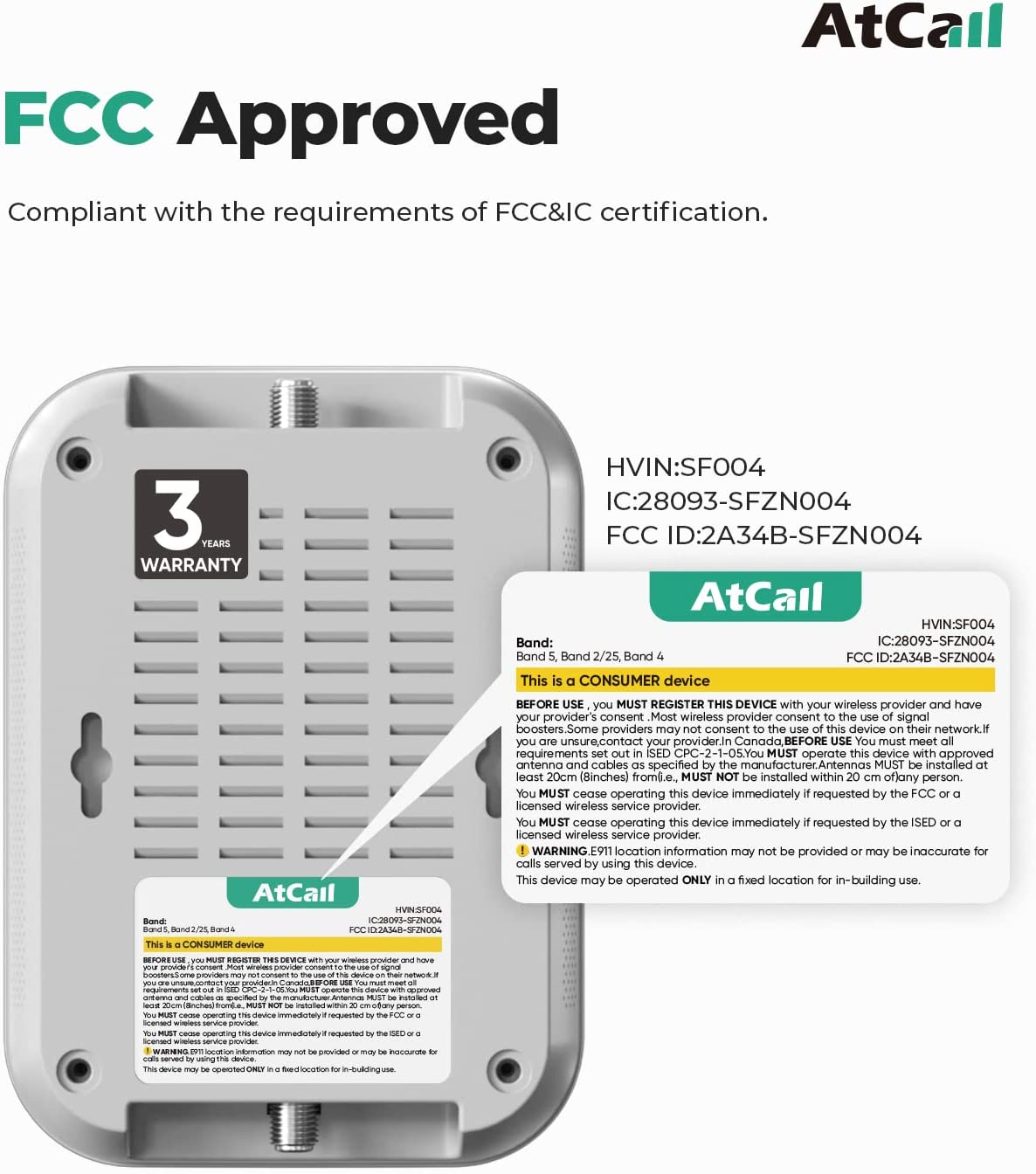 • 【FCC Approved】HVIN: SF004, FCC ID: 2A34B-SFZN004. The cell phone booster for home is compliant with the requirements of the standards applied. 30-day money back guarantee, 3-year manufacturer warranty, excellent tech support. Any problem, please feel free to contact us, we are at your service all the time