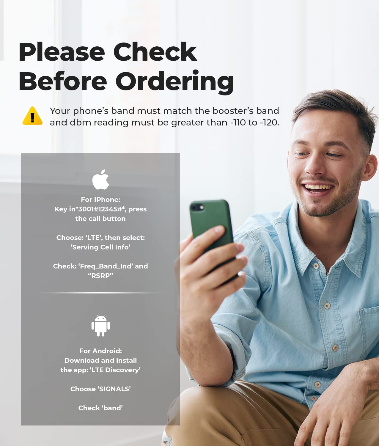 • 【Support Multi-User&Multi-Device】Cell phone booster Kit works with every network and carriers, including AT&T, Sprint, T-Mobile, Straight Talk and US Cellular on bands 12/17/5/2/25/4. Improve weak signal reception and no longer need to be near a window or make calls outside. Multi-user and multi-device use at the same time, even if you, your family and friends use mobile devices with different carriers, the signal can be boosted within the coverage of the booster.