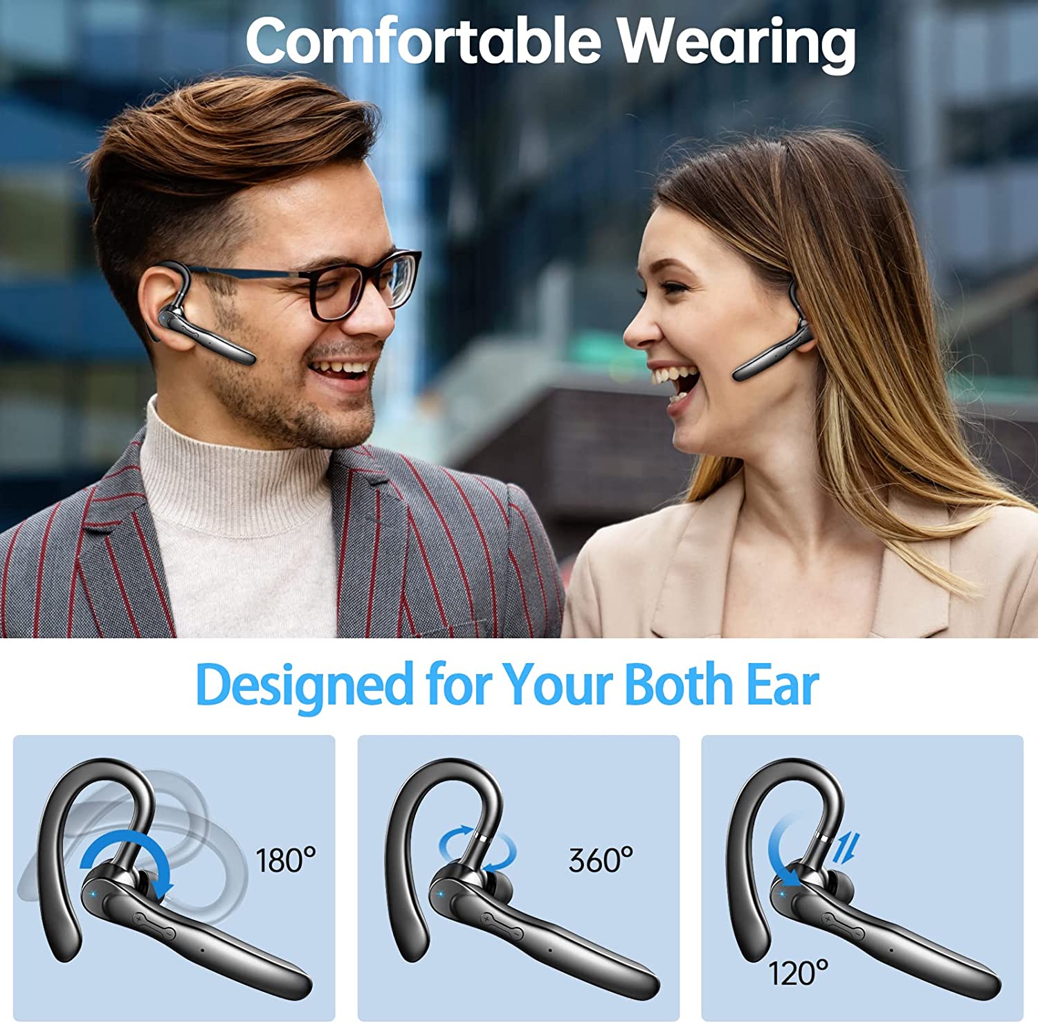 • Comfortable To Wear: Lightweight wireless Bluetooth headset designed to fits perfectly for your left or right ear. The earpiece only 0.55 oz (15.6 g) which alleviates pain and helps reduce fatigue over time. In addition, the ear piece can be rotated 180°and the ear hook can be rotated 360°according to your preferred angle. Meanwhile, rotatable ear hook arm swivels are available in 3 different sizes to ensure a prefect wearing in either ear.