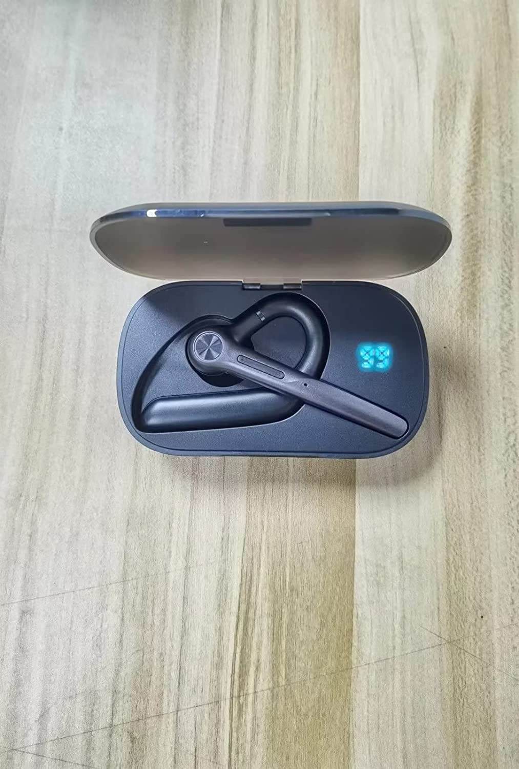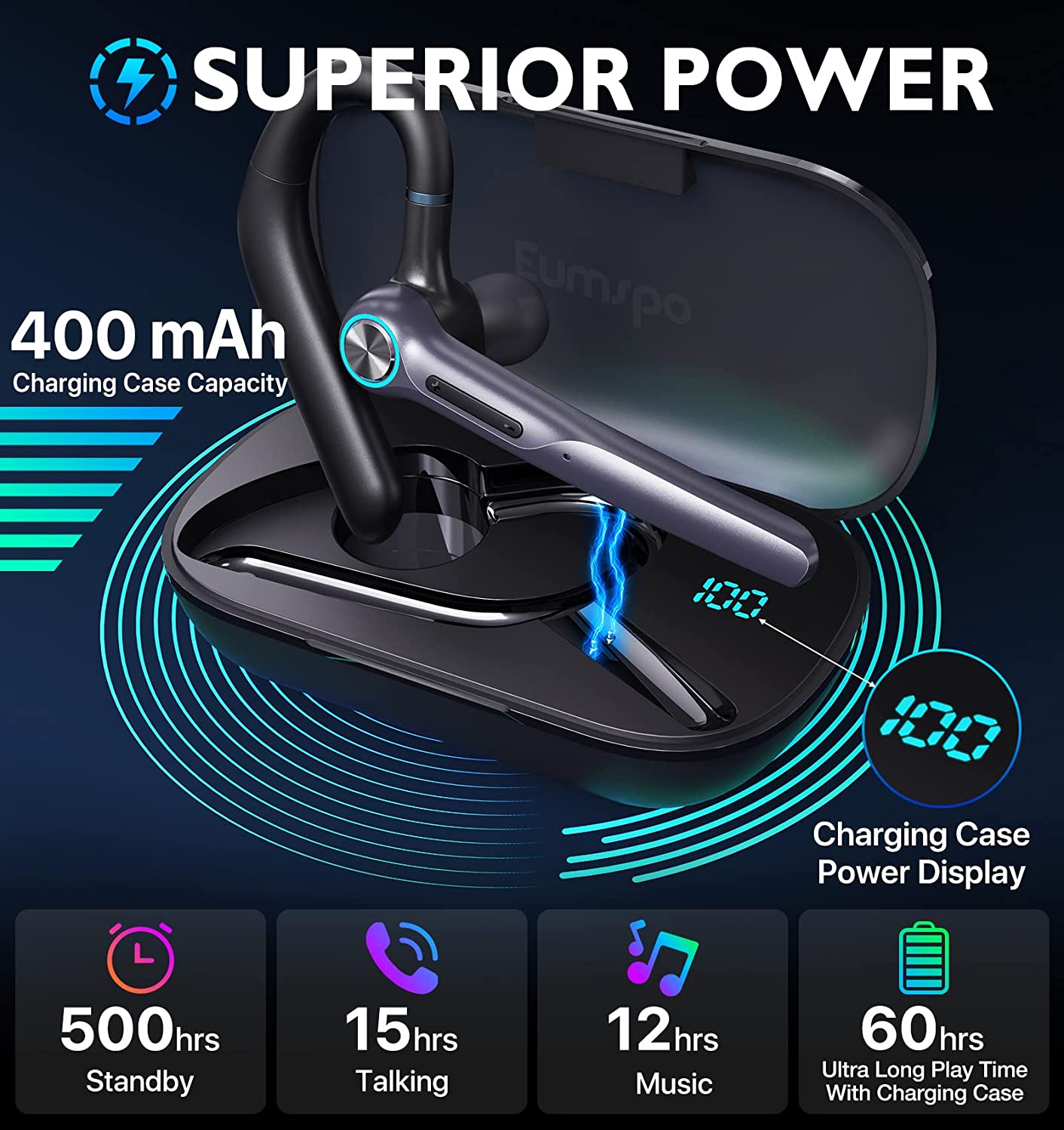 Eumspo Headset Wireless Earpiece 60Hrs Playback Built-in Dual Mic Noise Canceling Wireless Headset Earphone with 400mAh LED Charging Case for Business Office Trucker