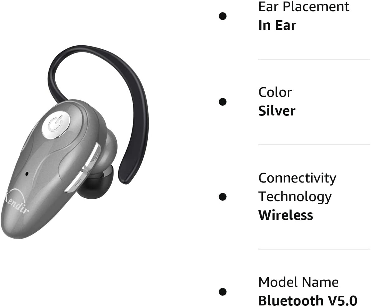 Kendir Bluetooth Headset, V5.0 Ultralight Wireless Headphone Cell Phone Earpiece with Mic Headsetcase,Volume Control, Handsfree Earbud,Compatible with Android/iPhone/Smartphones/Laptop