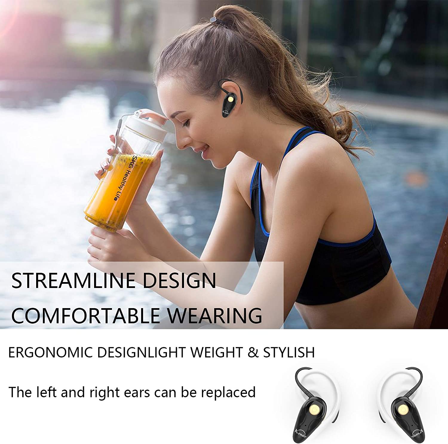 • 【Comfortable fit & 15M Connection】The wireless earpiece weights 8g; it’s lightweight and portable with its Headsetcase; comfortable and secure in-ear buds with ear hook keeps the comfort for long time wearing; perfect for sports jogging gym exercise watching tv or sleeping.The connection distance is up to 15 meters which ensures true freedom and creates a unique sense of technology.