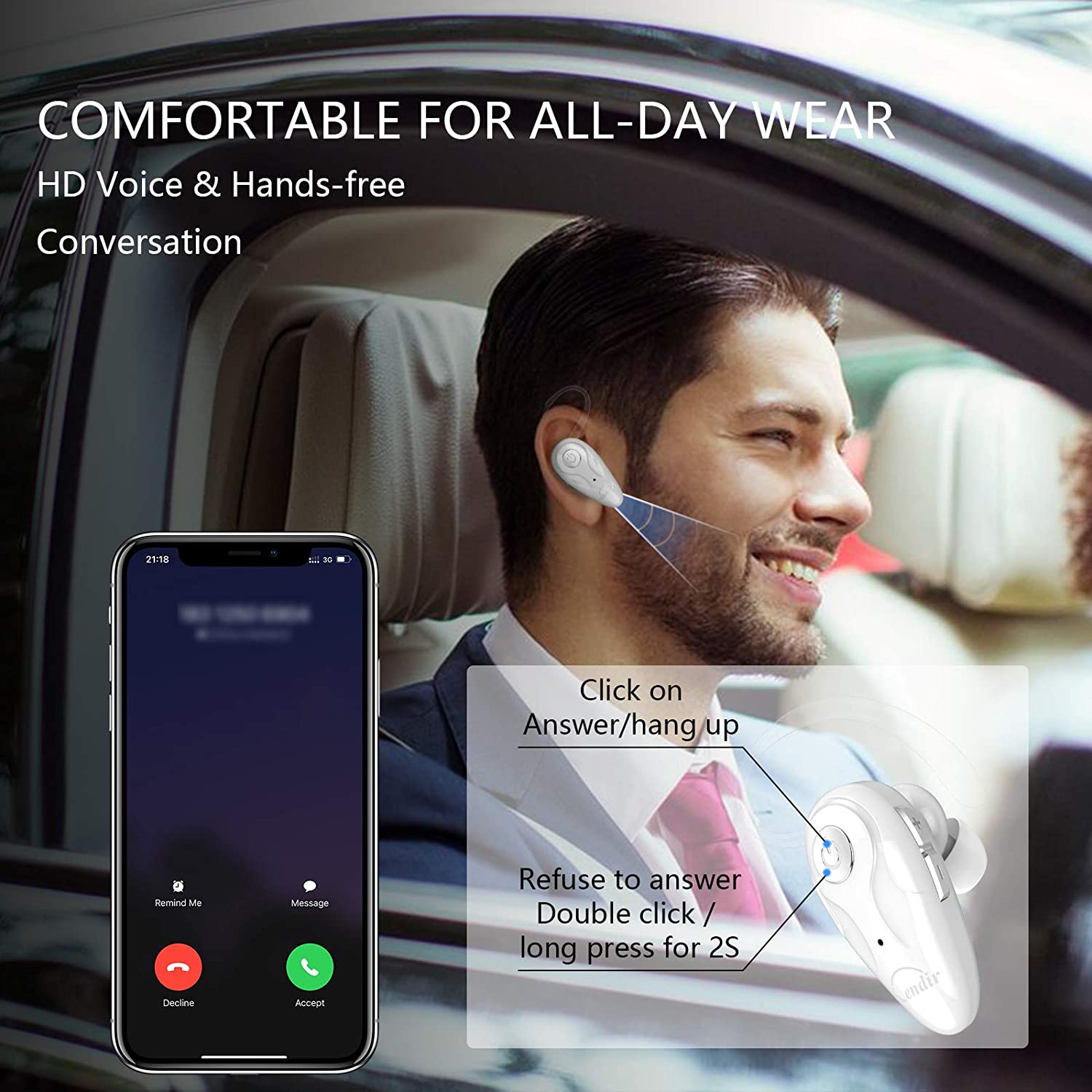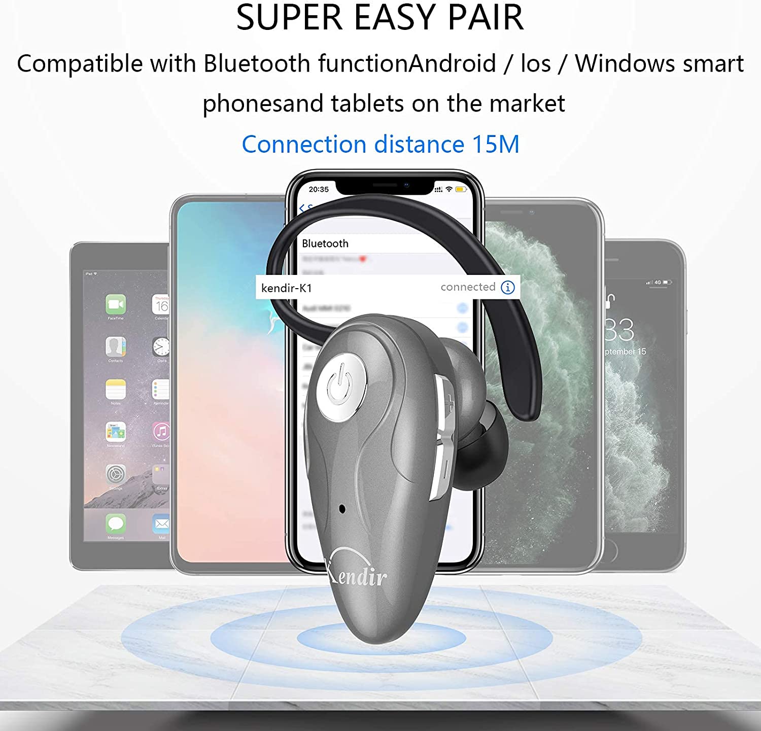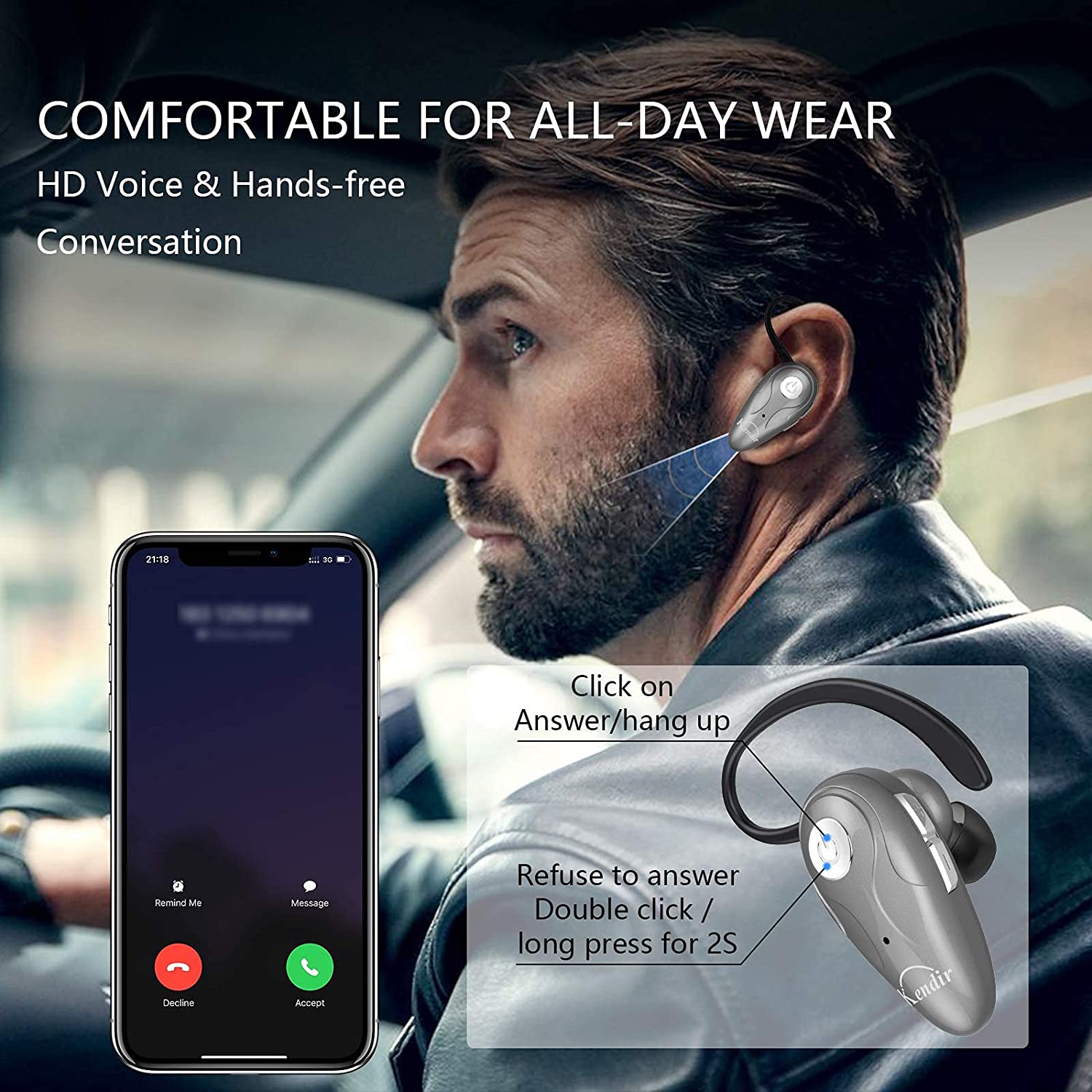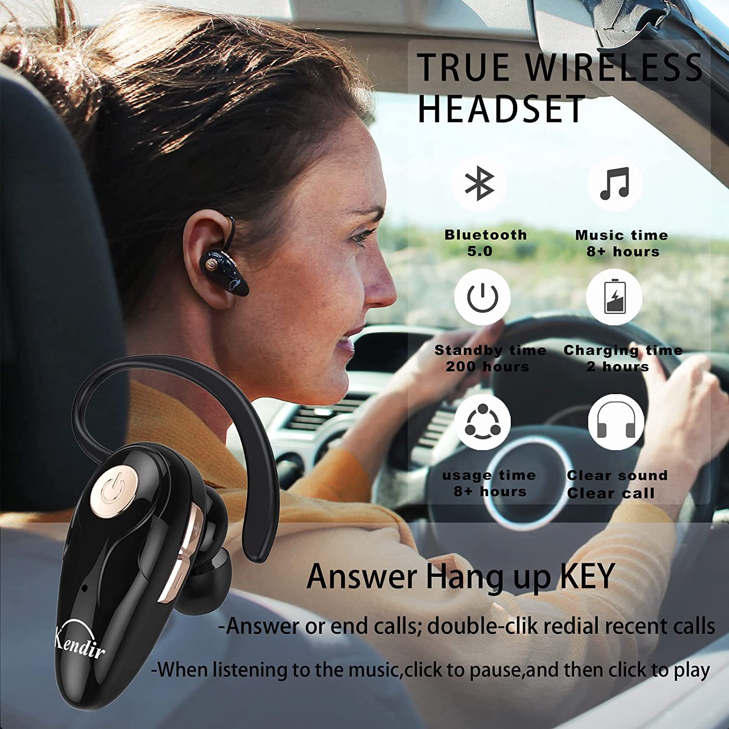 • 【High Compatibility & Bluetooth V5.0】- Kendir's driving headset is compatible with iPhone, Android, most of the smartphones, tablets, Windows systems, etc. With advanced Bluetooth V5.0, this wireless headset has a higher transmission speed and work efficiency than other products, as well as consuming less power during operation.