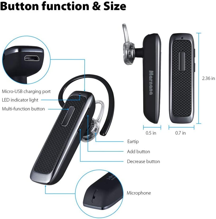 Marnana Bluetooth Headset, Wireless Bluetooth Earpiece with 18 Hours Playtime and Noise Cancelling Mic, Ultralight Earphone Hands-Free for iPhone iPad Tablet Samsung Android Cell Phone Call - Black