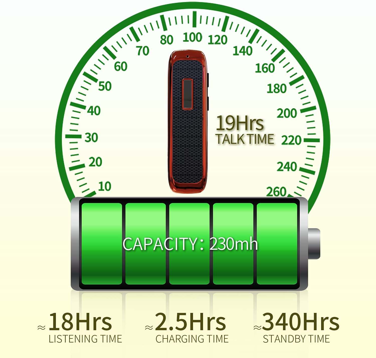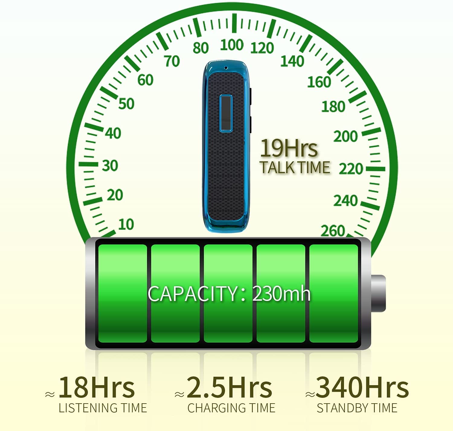 • Long Battery Life: High-performance battery provides up to 18 hours of music time,19 hours of talk time or 14 days of standby from a single charge.