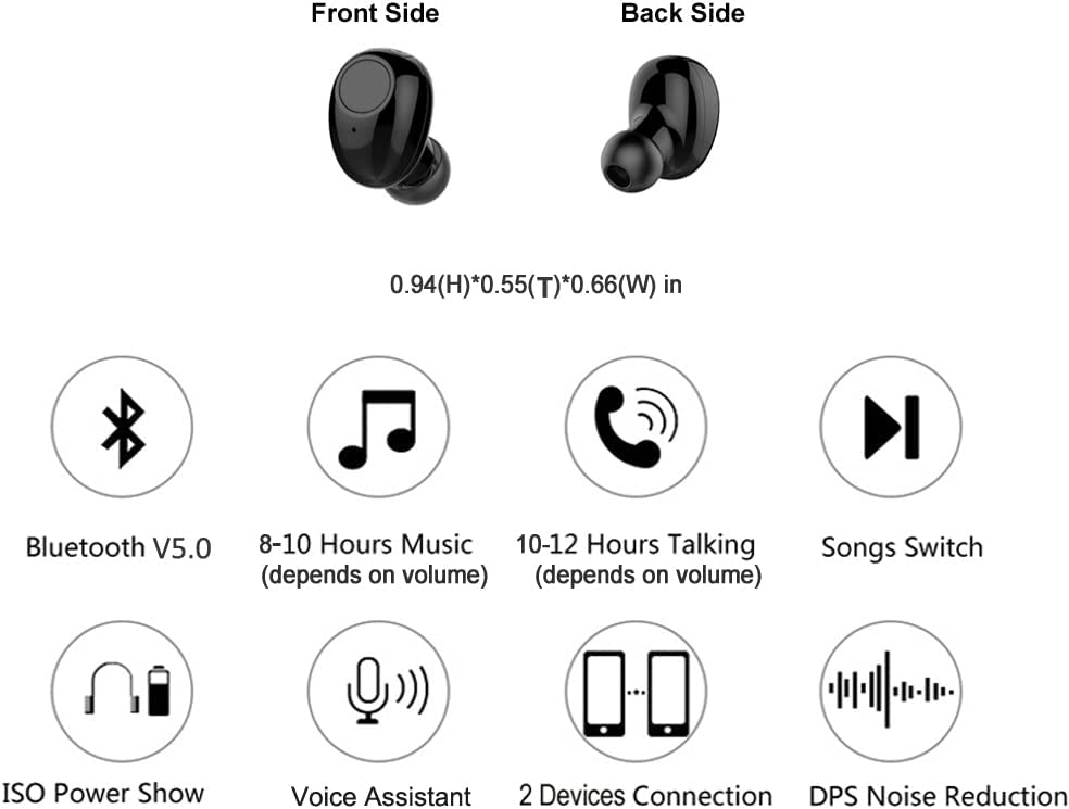 • 10 Hrs Enhanced Battery: less than 2-hr charging, the earphone provide up to 10 hours music and call time (depends on volume), which is one of top records in mini single wireless headphone products during past one year.