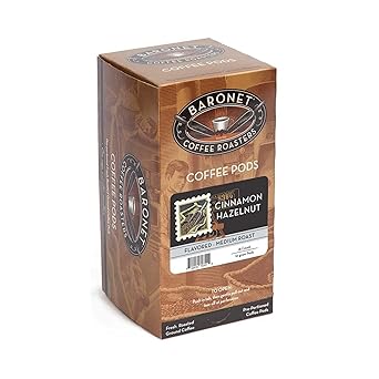 Baronet Coffee Pods [Cinnamon Hazelnut-54 Pods] Flavored Single Cup Use, Like Senseo Coffee Pods [3 Boxes of 18 Single Serve 10 Gram Pads] Regular Strength Soft Coffee Pods, Medium Roast [Cinn Hazel]