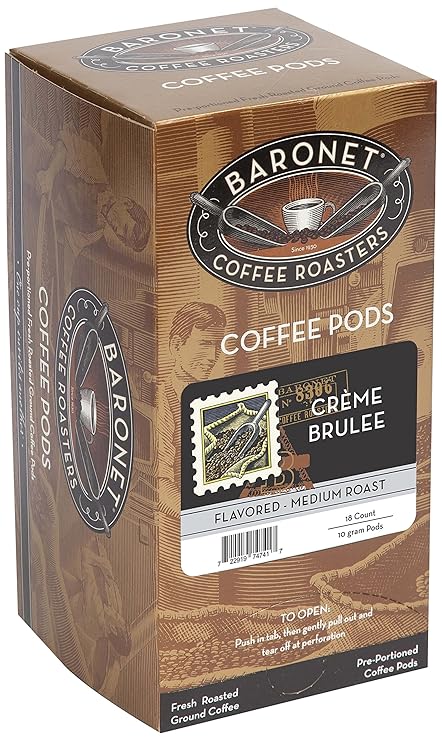 Baronet Coffee Pods [Cr�ïme Brulee-54 Pods] Flavored Single Cup Use, Like Senseo Coffee Pods [3 Boxes of 18 Single Serve 10 Gram Pads] Regular Strength Soft Coffee Pods, Medium Roast [Creme Brulee]
