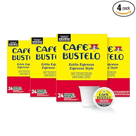 Caf�© Bustelo Espresso Style Dark Roast Coffee, 24 Count (Pack of 4), Total 96 Keurig K-Cup Pods